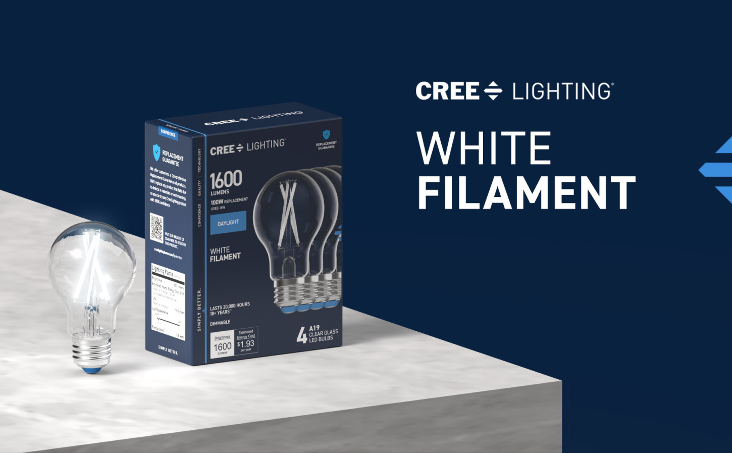 Refresh your lighting to fit your aesthetic with our White Filament LED A19 Daylight bulb. Equipped with low-profile, white coated filament design, these clear bulbs give off stunning illumination while on and blend seamlessly into your decor while off. The Daylight (5000K) tone boosts visibility in your space and keeps you on task with its vibrant clarity for up to 20,000 hours. The remarkable 90+ Color Rendering Index (CRI) makes colors appear more vivid and true-to-life, enhancing the beauty of your home's decor and making everything look its best. This 1600-lumen bulb has a medium-size E26 base, making it an easy upgrade from traditional 100W incandescent bulbs in almost any fixture. Replacements are fewer and further between with eco-friendly, LED bulb technology that uses 84% less energy than incandescent bulbs. Whether it's in your living room, home office, or dining room, enjoy flicker-free, sustainable lighting that elevates your fixtures with effortlessly sleek style.
