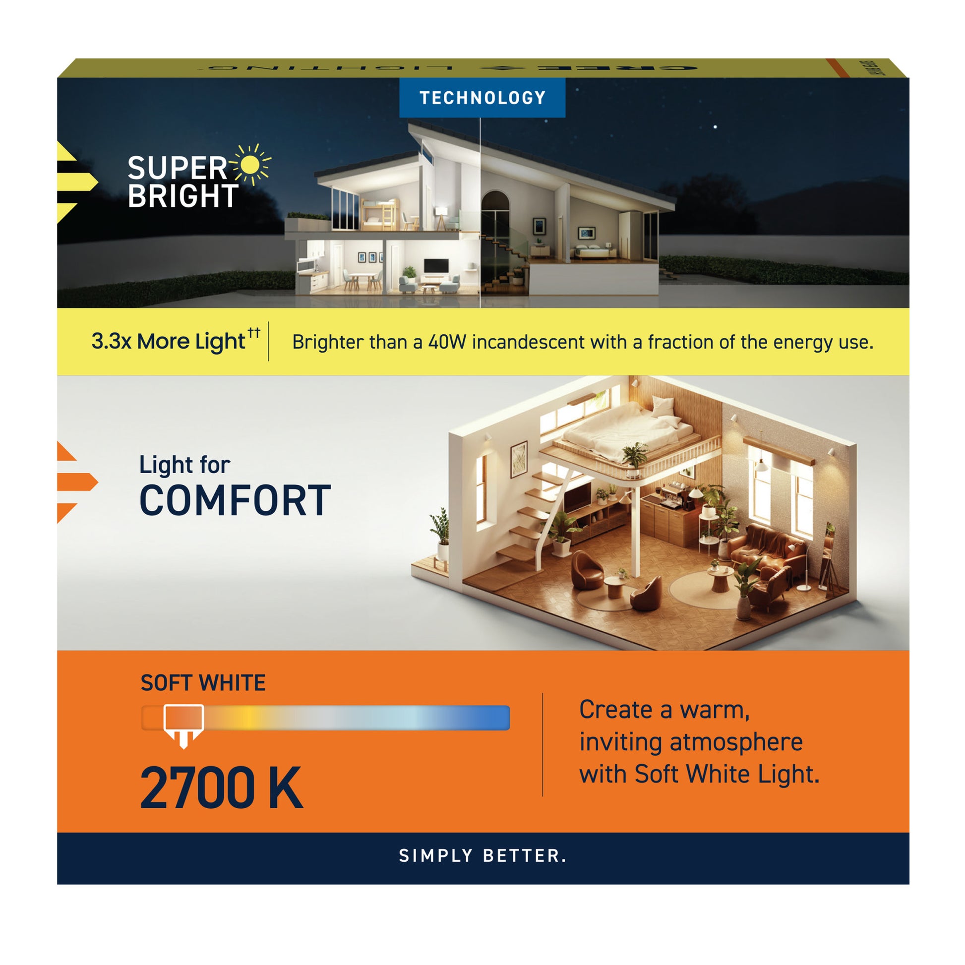 - Create a warm, inviting atmosphere that makes any space feel like home with Soft White light (2700K)