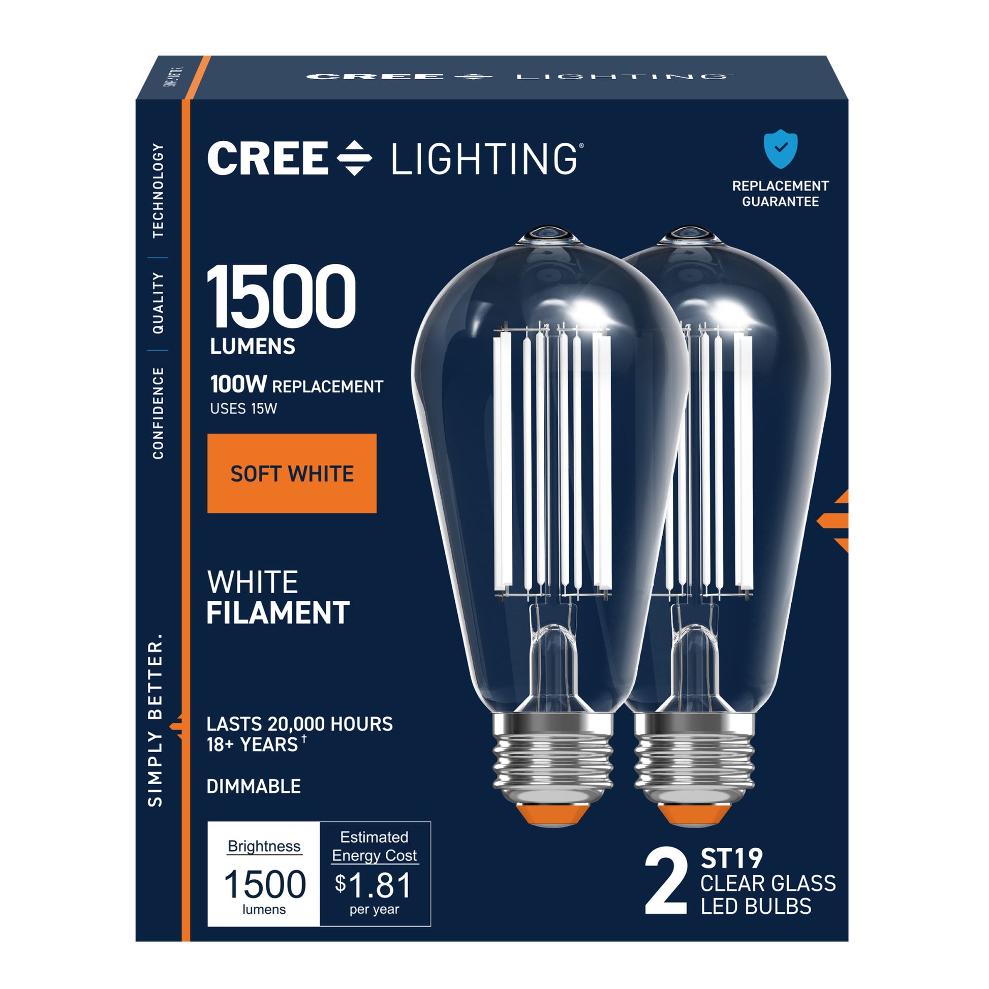 Refresh your lighting to fit your aesthetic with our White Filament LED ST19 Soft White bulb. Equipped with low-profile, white coated filament design, these clear glass bulbs give off stunning illumination while on and blend seamlessly into your decor while off. The Soft White (2700K) tone creates a warm, inviting atmosphere that makes any space feel like home for up to 20,000 hours. The remarkable 90+ Color Rendering Index (CRI) makes colors appear more vivid and true-to-life, enhancing the beauty of your home’s decor and making everything look its best. This 1500-lumen bulb has a medium-size E26 base, making it an easy upgrade from traditional 100W incandescent bulbs in almost any fixture. Replacements are fewer and further between with eco-friendly, LED bulb technology. Whether it’s in your living room, bedroom, or reading nook, enjoy flicker-free, sustainable lighting that elevates your fixtures with effortlessly sleek style.