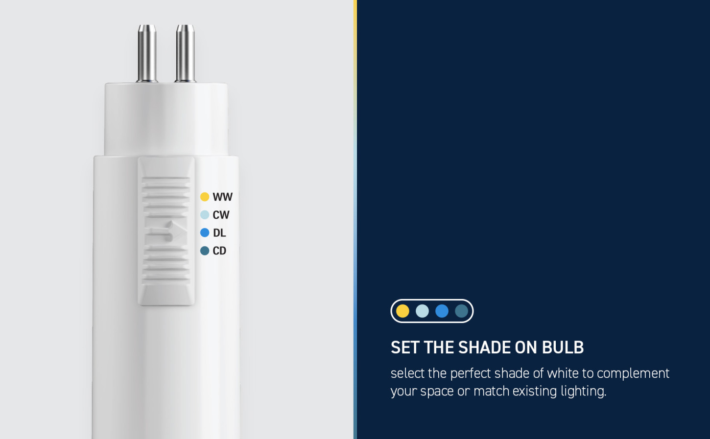 - Choose between 3000K Warm White, 4000K Cool White, 5000K Daylight, and 6500K Cool Daylight CCTs