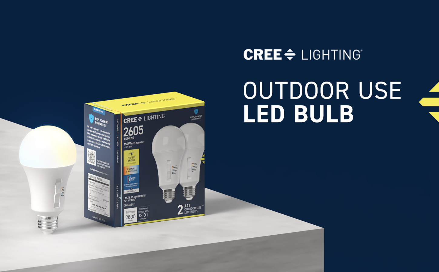 - With a 25,000-hour lifespan, this bulb lets you forget about replacements for years