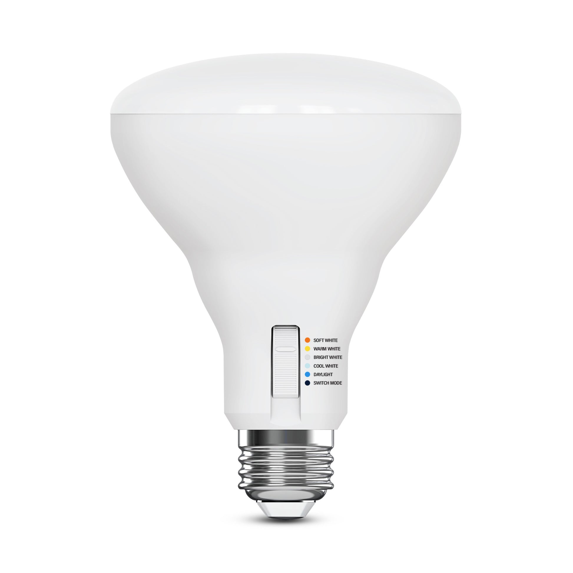 Upgrade your lighting game with our BR30 Super Bright 5 Shades + Switch Mode LED Bulb, perfect for high ceilings and large outdoor spaces that need an extra shine with fewer bulbs. Preset Soft White (2700K), Warm White (3000K), Bright White (3500K), Cool White (4000K), and Daylight (5000K) before installation or select Switch Mode to toggle between shades anytime with your existing wall switch. Low Blue technology filters out harsh blue light that can cause eye strain, headaches, and disrupt sleep. With a remarkable 90+ Color Rendering Index (CRI), colors appear more vivid and true-to-life, enhancing the beauty of your home’s décor and making everything look its best. Built to last with an impressive 25,000-hour lifespan, this energy-efficient LED saves you money and time, reducing replacements and energy costs compared to traditional 150W incandescent bulbs. Featuring a medium E26 base, it’s compatible with most fixtures, making upgrades effortless in your living spaces. The bulb's dimmable design lets you set the mood with a flick of your wall switch, whether it’s inside or outside, in recessed or track lighting fixtures. Illuminate your world with a bulb that combines comfort, clarity, and reliability in one brilliant package.