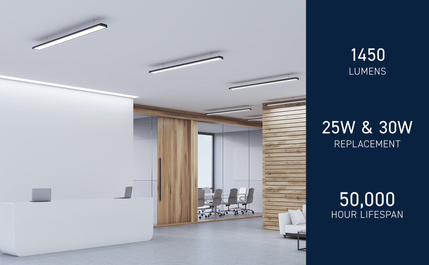 - 3ft linear tube ensures consistent light distribution across a broad area