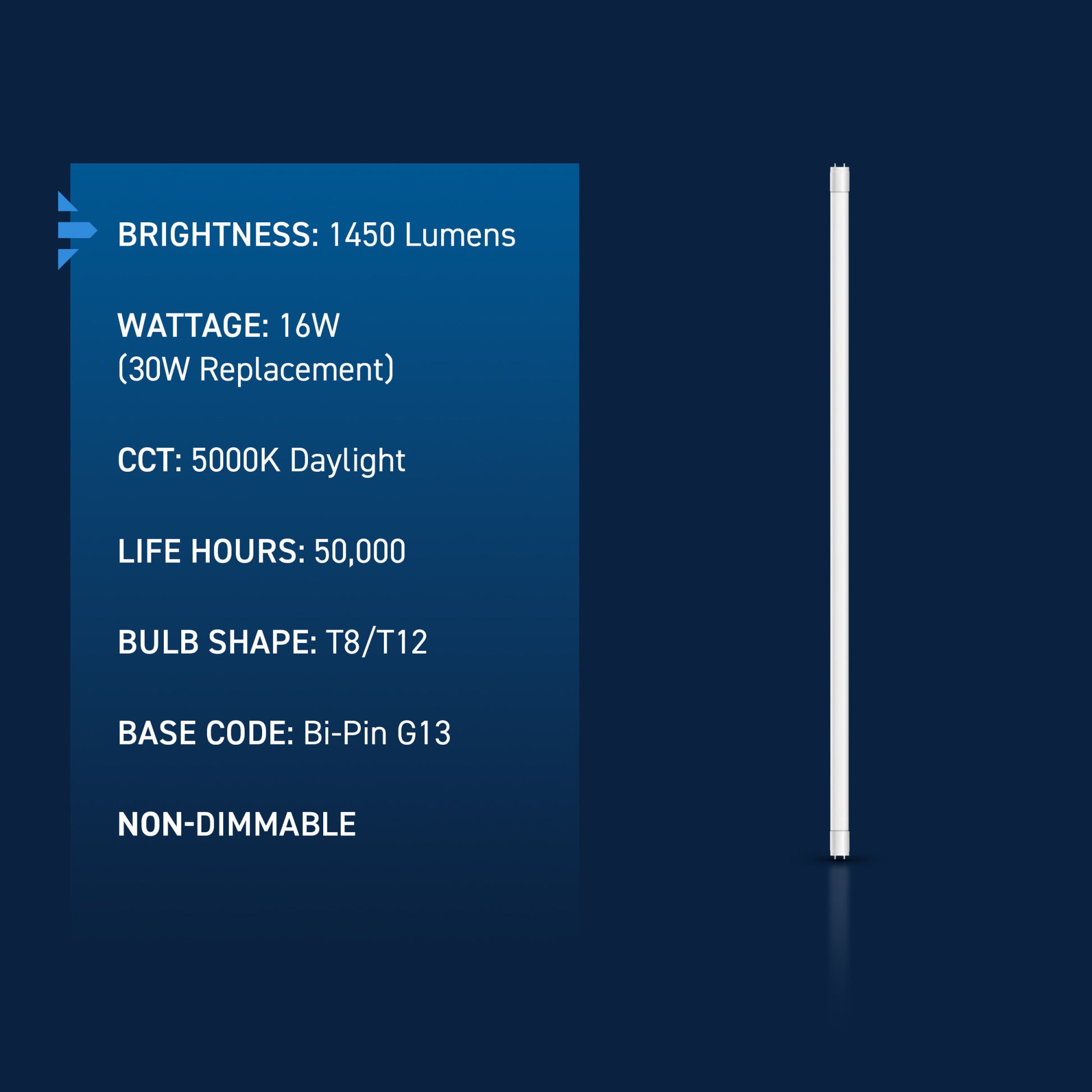 - 16W T8/T12 shape LED is ideal for replacing 30W fluorescent tubes