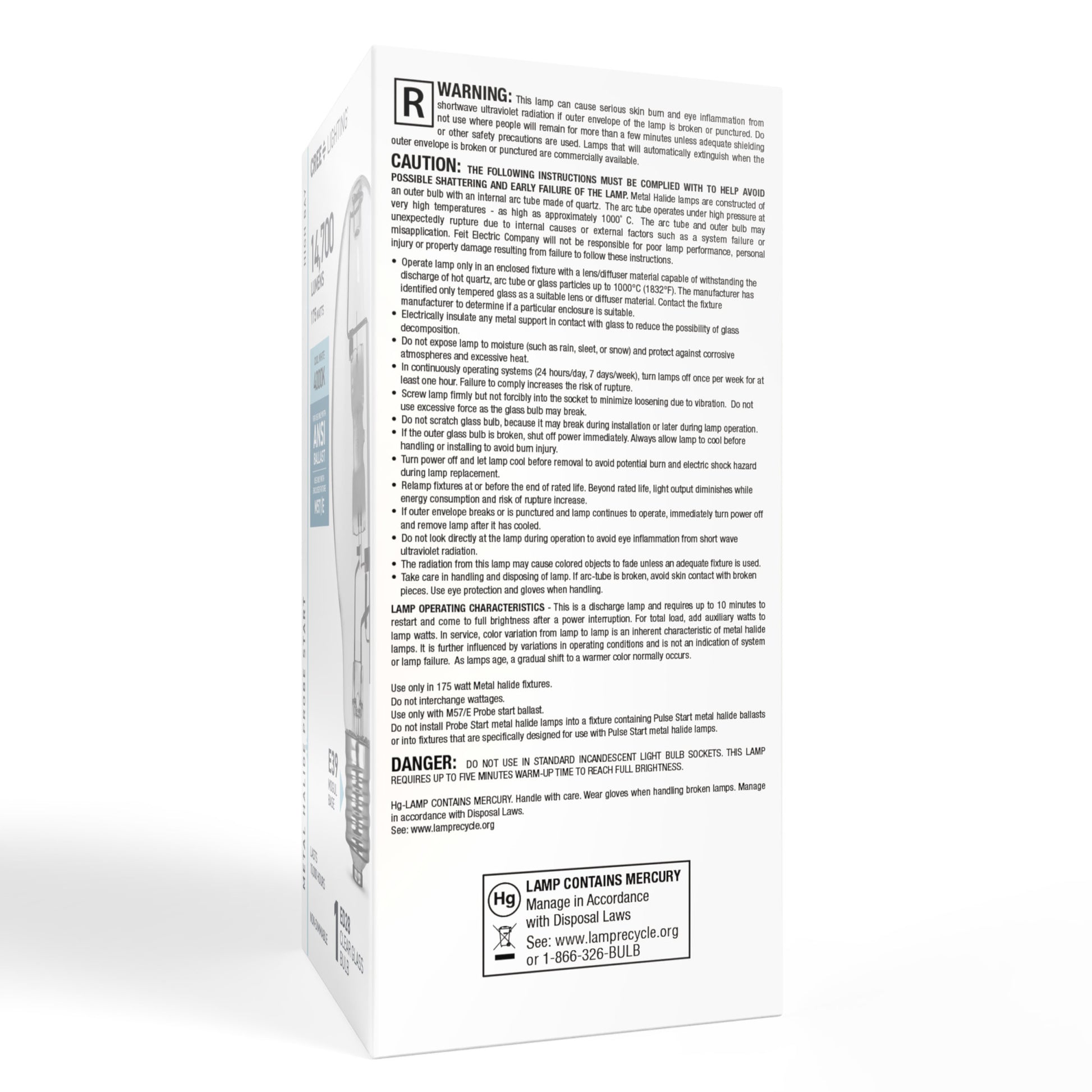 The Cree Lighting 175W Metal Halide HID Bulb is built for industrial, commercial, and outdoor applications that demand serious brightness. Delivering 14,400 lumens in a crisp Cool White (4000K) tone, this ED17 bulb with an E26 medium base is ideal for enclosed streetlights, parking lot fixtures, and high or low bay setups. Designed for use with ANSI M57/E ballasts, it provides consistent, high-intensity light and a rated life of up to 10,000 hours—keeping your spaces well-lit and your maintenance low.