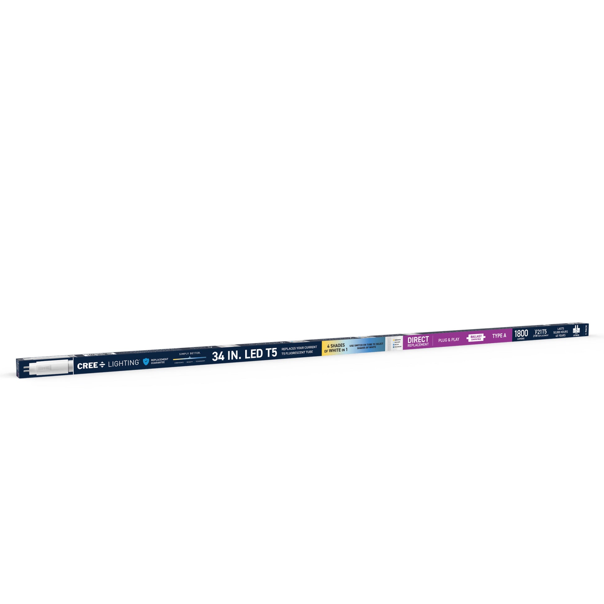 Upgrade your lighting game with Cree Lighting’s 34in Linear LED Light Tube, a perfect replacement for T5 fluorescent bulbs in almost any commercial or business environment. This tube is a Type A Direct Replacement that works with most existing electronic ballasts for quick and easy plug-and-play installation, no rewiring required. Set your color temperature on the bulb before installation to get the right light for your space – 3000K Warm White, 4000K Cool White, 5000K Daylight, or 6500K Cool Daylight. LED light turns on instantly without the warmup time required by fluorescents. This 1800 Lumen non-dimmable tube uses just 18W of electricity, with cool running performance for its entire 50,000-hour lifespan. Whether it’s in the garage, storage unit, warehouse, or office, enjoy flicker-free, mercury-free lighting built to last.