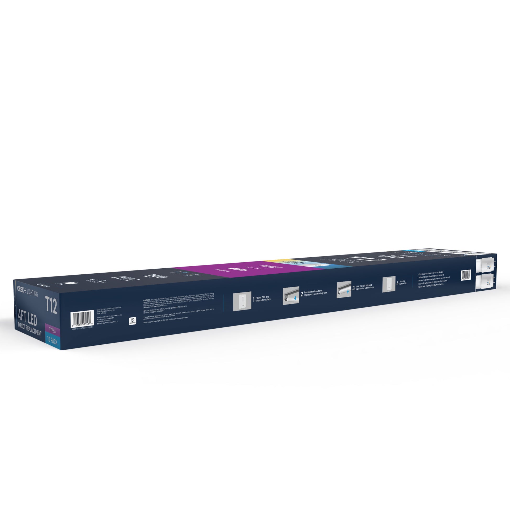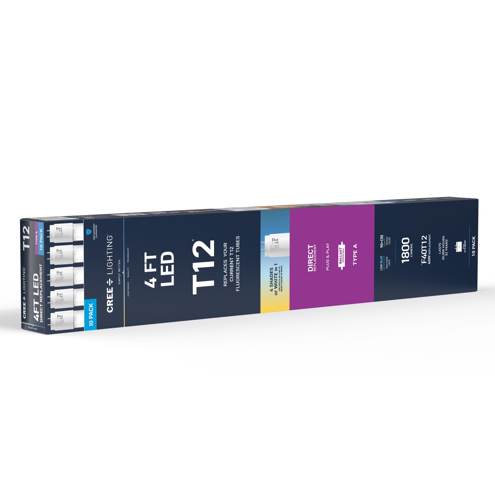 Upgrade your lighting game with Cree Lighting’s 4ft LED Light Tube, a perfect replacement for T12 fluorescent bulbs in public and commercial environments. This tube is a Type A Direct Replacement that works with most existing electronic ballasts for quick and easy plug-and-play installation, no rewiring required. Set your color temperature on the bulb before installation to get the right light for your space – 3000K Warm White, 4000K Cool White, 5000K Daylight, or 6500K Cool Daylight. The remarkable 90+ Color Rendering Index (CRI) makes colors appear more vivid and true-to-life, enhancing the beauty of your space and making everything look its best. LED light turns on instantly without the warmup time required by fluorescents. This 1800 Lumen non-dimmable tube uses 18W of electricity, with cool running performance for its entire 35,000-hour lifespan. Whether it’s in a garage, warehouse, or commercial space, enjoy flicker-free, mercury-free lighting built to last.