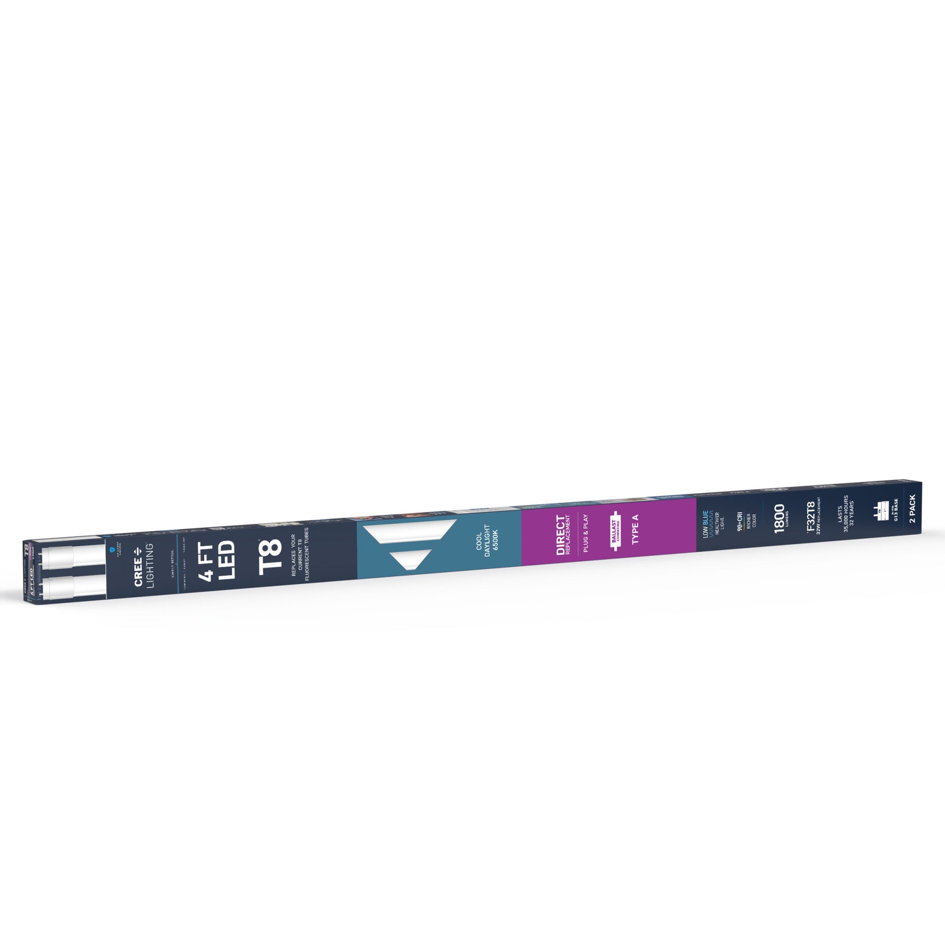 Upgrade your lighting game with Cree Lighting’s 4ft LED Light Tube, a perfect replacement for T8 fluorescent bulbs in office and commercial environments. This tube is a Type A Direct Replacement that works with most existing electronic ballasts for quick and easy plug-and-play installation, no rewiring required. Maximize clarity and precision with the ultra-bright intensity of Cool Daylight Light. The remarkable 90+ Color Rendering Index (CRI) makes colors appear more vivid and true-to-life, enhancing the beauty of your space and making everything look its best. LED light turns on instantly without the warmup time required by fluorescents. This 1800 Lumen non-dimmable tube uses 18W of electricity, with cool running performance for its entire 35,000-hour lifespan. Low Blue technology filters harsh blue light that can cause eye strain, headaches, and disrupt sleep. Whether it’s in an office, retail, or commercial space, enjoy flicker-free, mercury-free lighting built to last.
