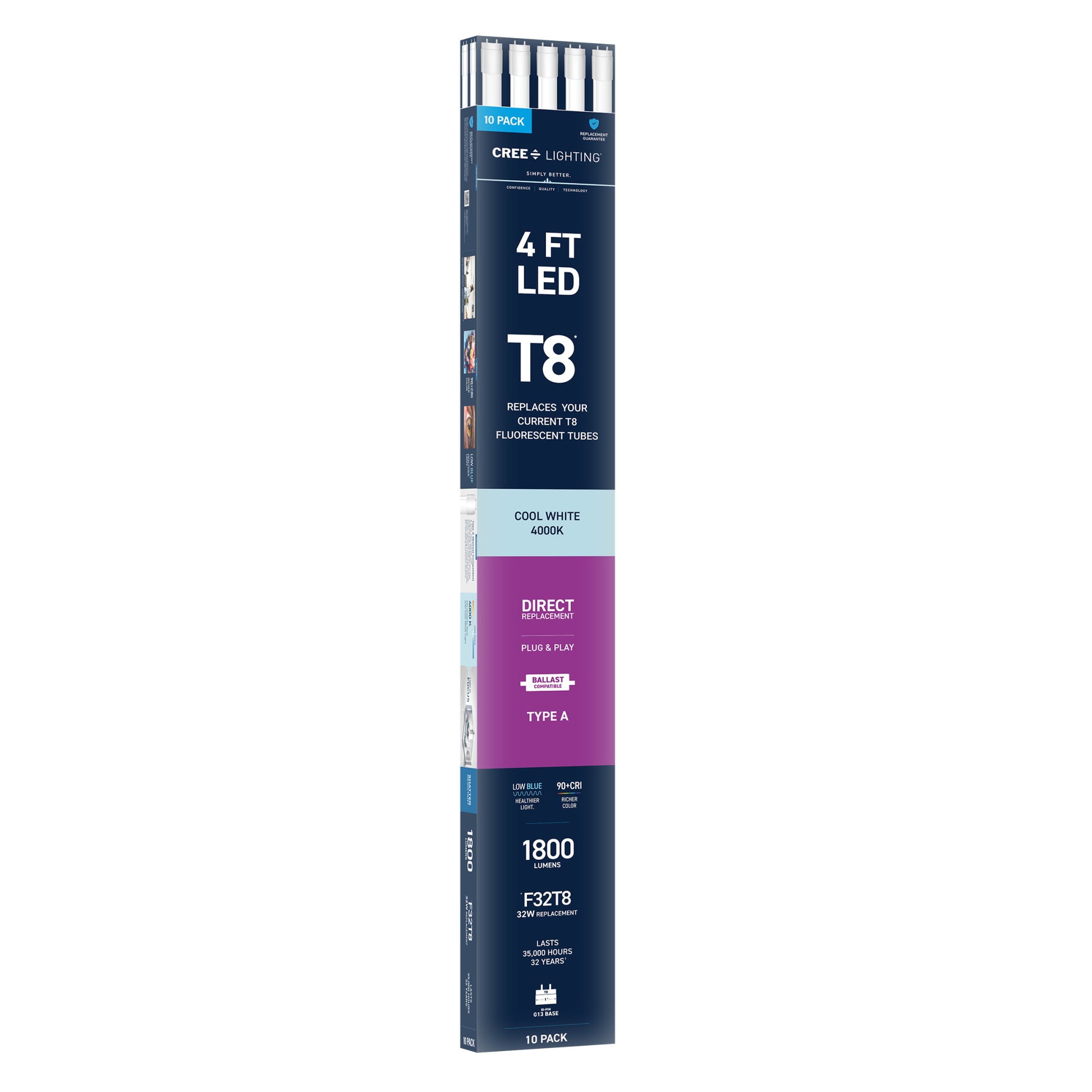 Upgrade your lighting game with Cree Lighting’s 4ft LED Light Tube, a perfect replacement for T8 fluorescent bulbs in office and commercial environments. This tube is a Type A Direct Replacement that works with most existing electronic ballasts for quick and easy plug-and-play installation, no rewiring required. Create a crisp, refreshing environment with 4000K Cool White light. The remarkable 90+ Color Rendering Index (CRI) makes colors appear more vivid and true-to-life, enhancing the beauty of your space and making everything look its best. LED light turns on instantly without the warmup time required by fluorescents. This 1800 Lumen non-dimmable tube uses 18W of electricity, with cool running performance for its entire 35,000-hour lifespan. Low Blue technology filters harsh blue light that can cause eye strain, headaches, and disrupt sleep. Whether it’s in an office, retail, or commercial space, enjoy flicker-free, mercury-free lighting built to last.