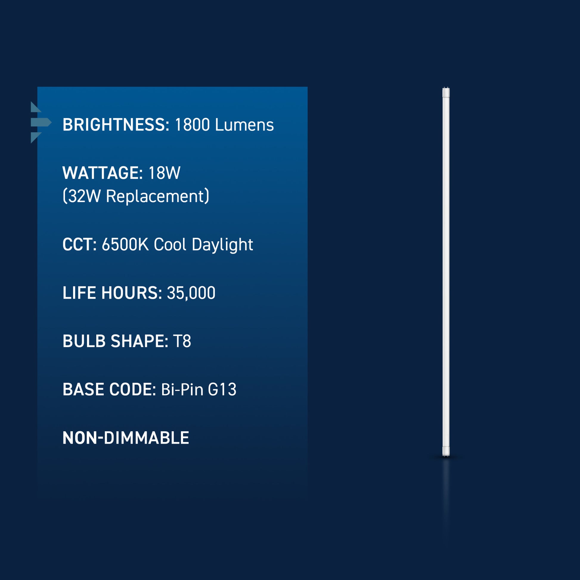 - 18W T8 shape LED is ideal for replacing 32W fluorescent tubes