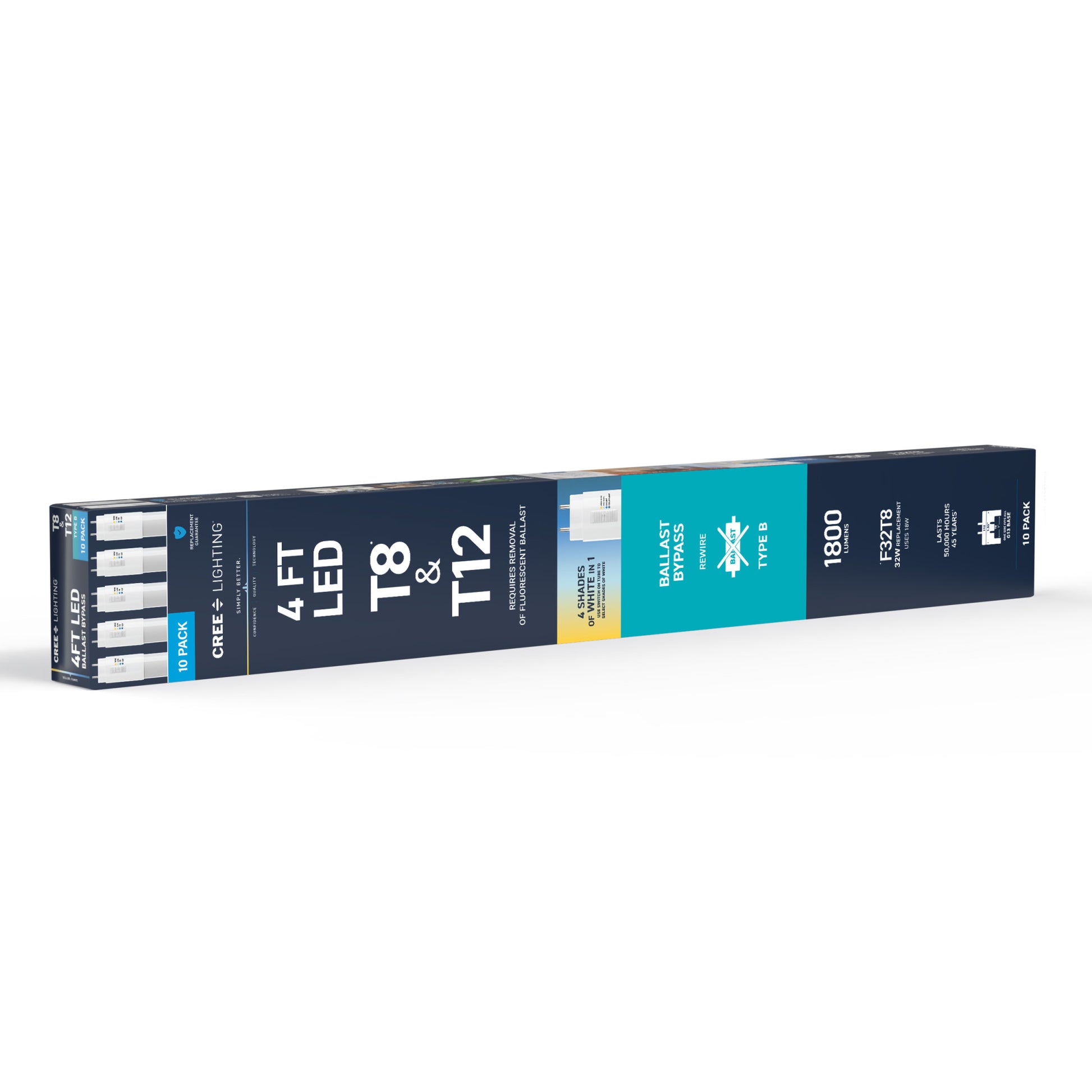 Upgrade your lighting game with Cree Lighting’s 4ft Linear LED Light Tube, a perfect replacement for T8 fluorescent bulbs in almost any commercial or business environment. This tube is a Type B Ballast Bypass that uses direct wiring and requires less maintenance over time. Set your color temperature on the bulb before installation to get the right light for your space – 3000K Warm White, 4000K Cool White, 5000K Daylight, or 6500K Cool Daylight. LED light turns on instantly without the warmup time required by fluorescents. This 1800 Lumen non-dimmable tube uses just 18W of electricity, with cool running performance for its entire 50,000-hour lifespan. Its shatter resistant coating makes for safe and easy disposal. Whether it’s in the garage, storage unit, warehouse, or office, enjoy flicker-free, mercury-free lighting built to last.