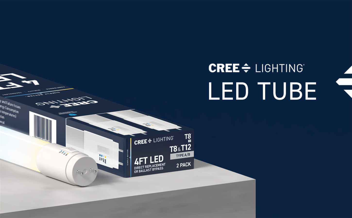 Upgrade your lighting game with Cree Lighting’s 4ft LED Light Tube, a perfect replacement for T8 fluorescent bulbs in public and commercial environments. This tube is a Type AB Direct Replacement OR Ballast Bypass that gives you the option to plug and play or rewire by bypassing the existing ballast during installation. Set your color temperature on the bulb before installation to get the right light for your space – 3000K Warm White, 4000K Cool White, 5000K Daylight, or 6500K Cool Daylight. LED light turns on instantly without the warmup time required by fluorescents. This 1800 Lumen non-dimmable tube uses 18W of electricity, with cool running performance for its entire 50,000-hour lifespan. Whether it’s in a garage, warehouse, or commercial space, enjoy flicker-free, mercury-free lighting built to last.