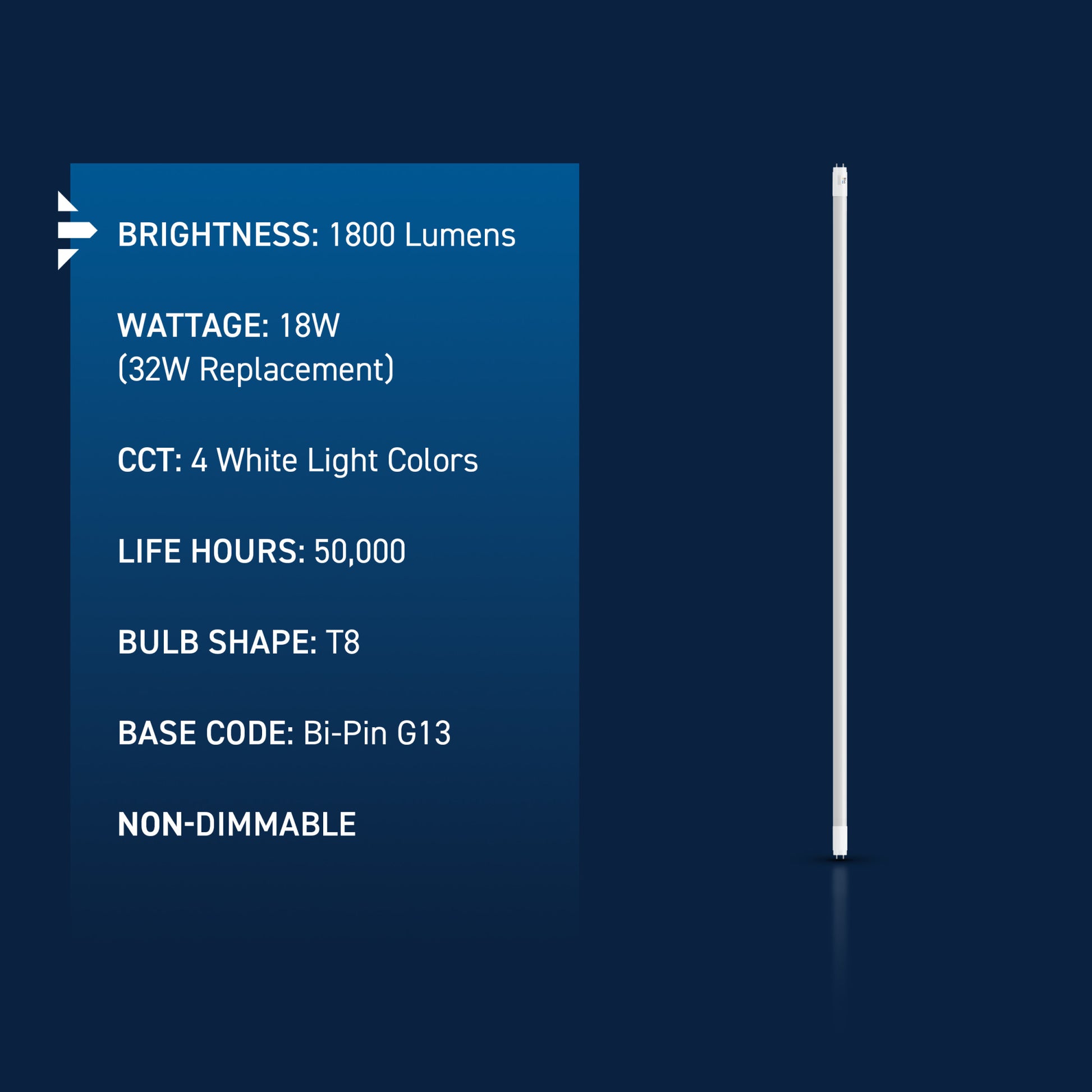 - 18W T8 shape LED is ideal for replacing 32W fluorescent tubes