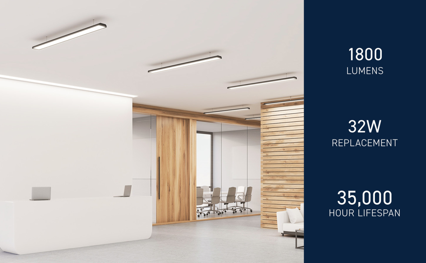 - 4ft linear tube ensures consistent light distribution across a broad area