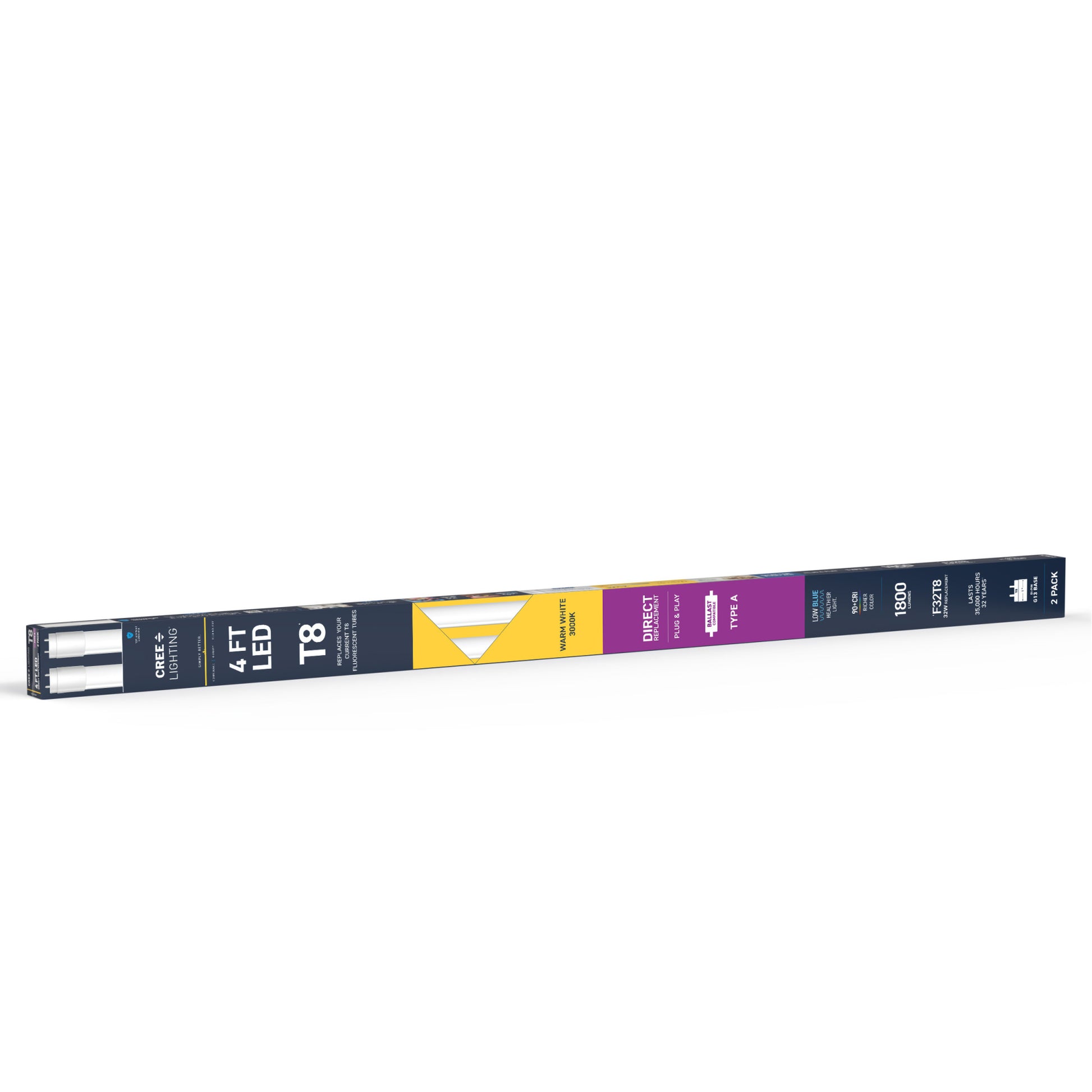 Upgrade your lighting game with Cree Lighting’s 4ft LED Light Tube, a perfect replacement for T8 fluorescent bulbs in office and commercial environments. This tube is a Type A Direct Replacement that works with most existing electronic ballasts for quick and easy plug-and-play installation, no rewiring required. Relax and recharge in the welcoming glow of Warm White Light. The remarkable 90+ Color Rendering Index (CRI) makes colors appear more vivid and true-to-life, enhancing the beauty of your space and making everything look its best. LED light turns on instantly without the warmup time required by fluorescents. This 1800 Lumen non-dimmable tube uses 18W of electricity, with cool running performance for its entire 35,000-hour lifespan. Low Blue technology filters harsh blue light that can cause eye strain, headaches, and disrupt sleep. Whether it’s in an office, retail, or commercial space, enjoy flicker-free, mercury-free lighting built to last.