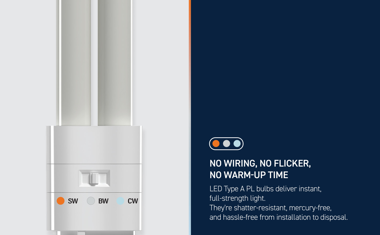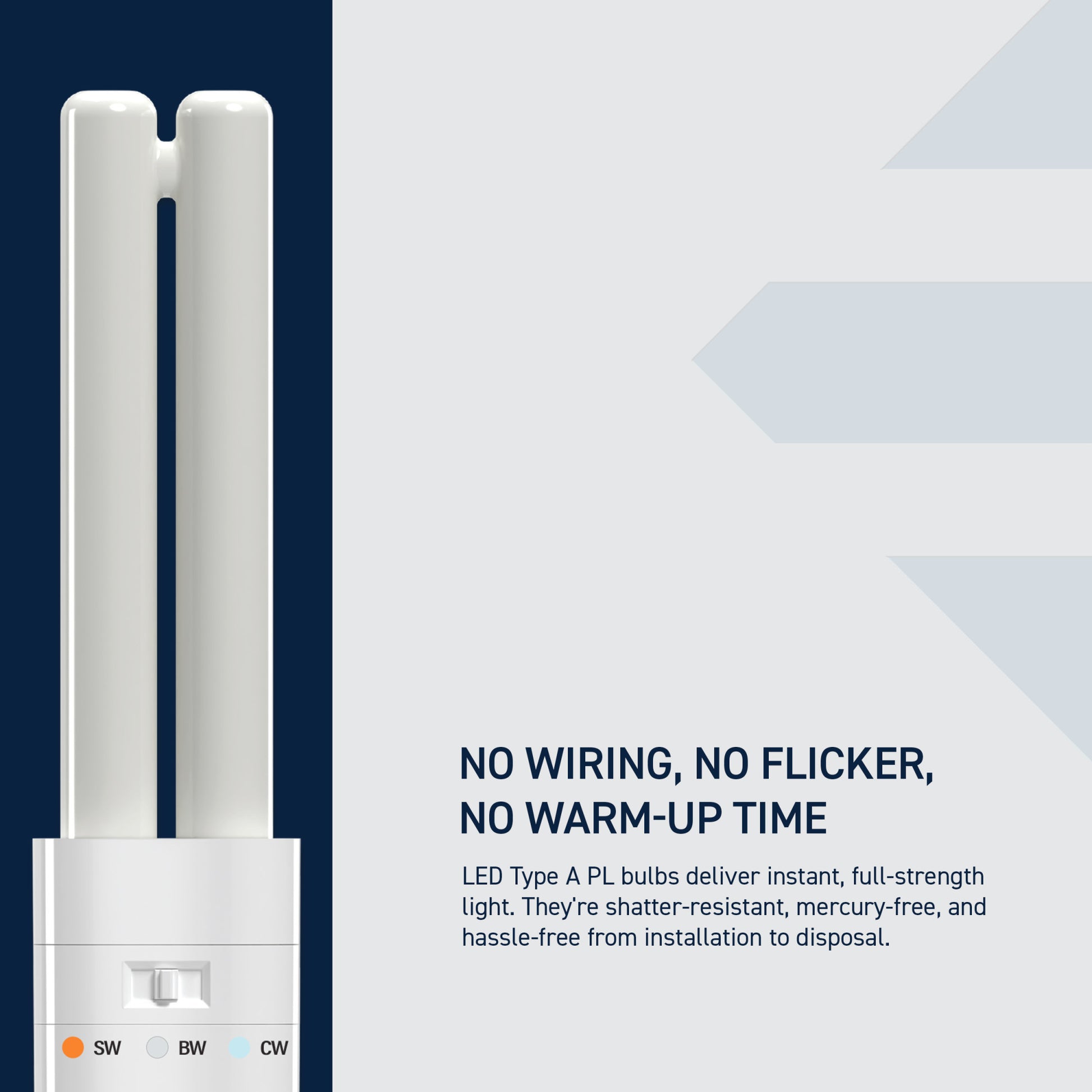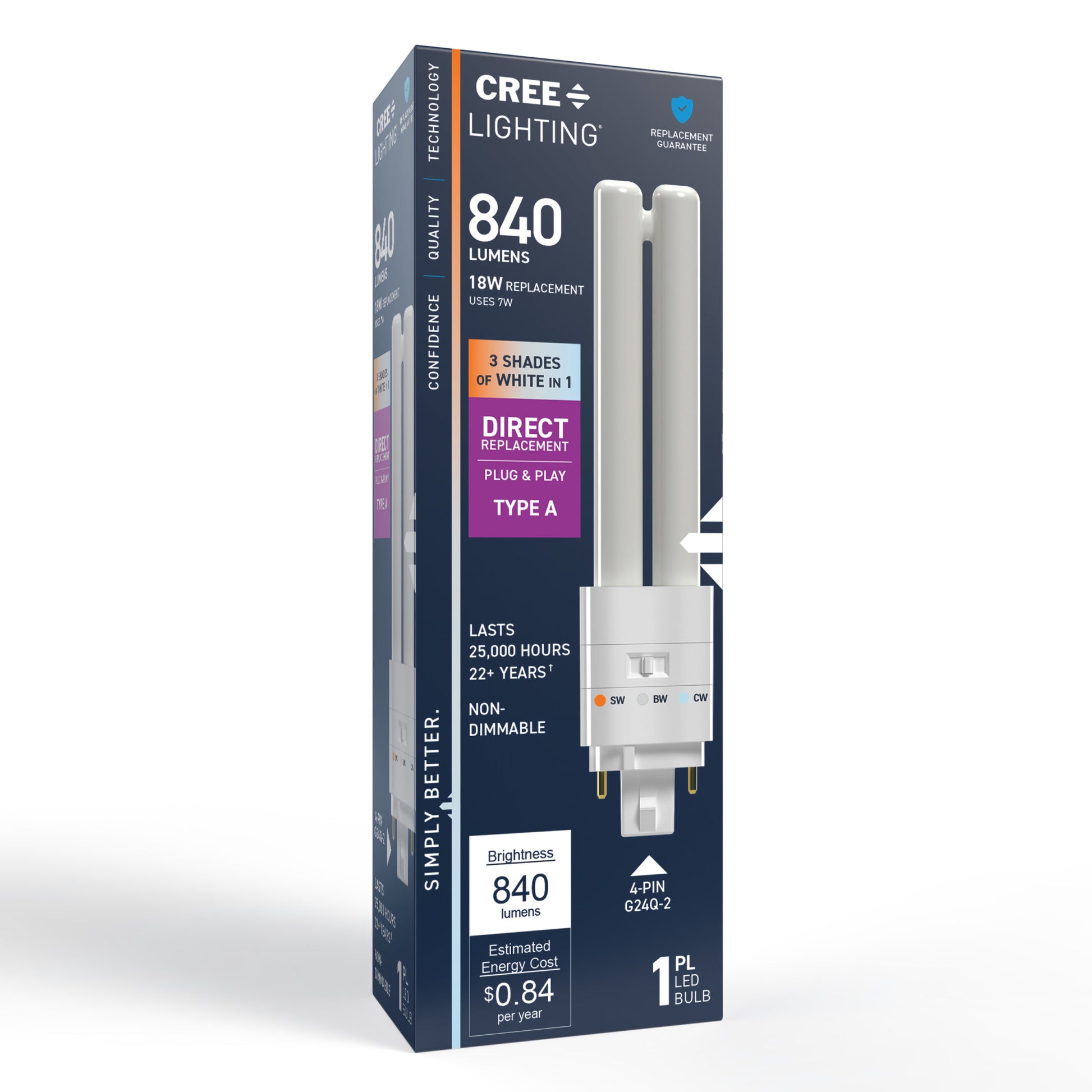 Upgrade to lighting that works with you. The 18W Replacement Double Twin Tube PL LED Bulb gives you 3 selectable color temperatures and high-efficiency performance in one compact package. Compatible with GX24q-2 base fixtures, this 7W LED is ideal for recessed ceilings, utility rooms, and commercial environments. It’s mercury-free, long-lasting, and ready to brighten your day.