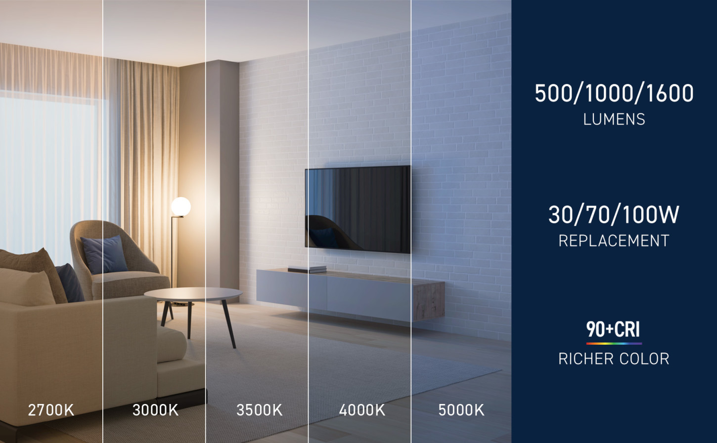 - Choose Soft White (2700K), Warm White (3000K), Bright White (3500K), Cool White (4000K), or Daylight (5000K)