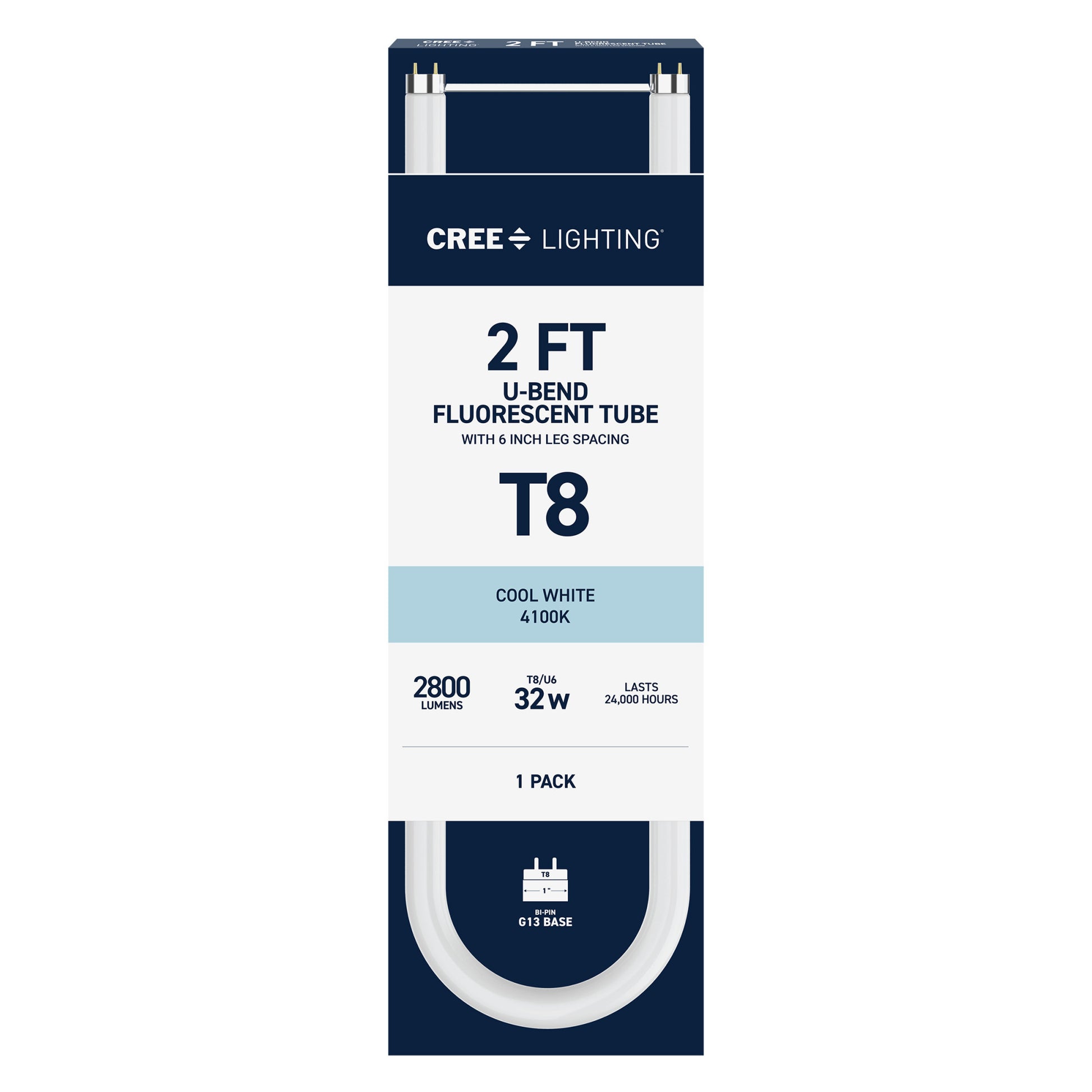 Upgrade your lighting game with Cree Lighting’s 2ft Fluorescent U-Bend Light Tube, a perfect replacement for T8 fluorescent bulbs in almost any commercial or business environment. 4100K Cool White light creates a crisp, refreshing environment in any room. This 2800 Lumen non-dimmable tube uses 32W of electricity, with relatively cool running performance for its entire 24,000-hour lifespan. Its bi-pin base makes for easy installation and upgrades. Whether it’s in the garage, storage unit, warehouse, or office, enjoy flicker-free lighting built to last.