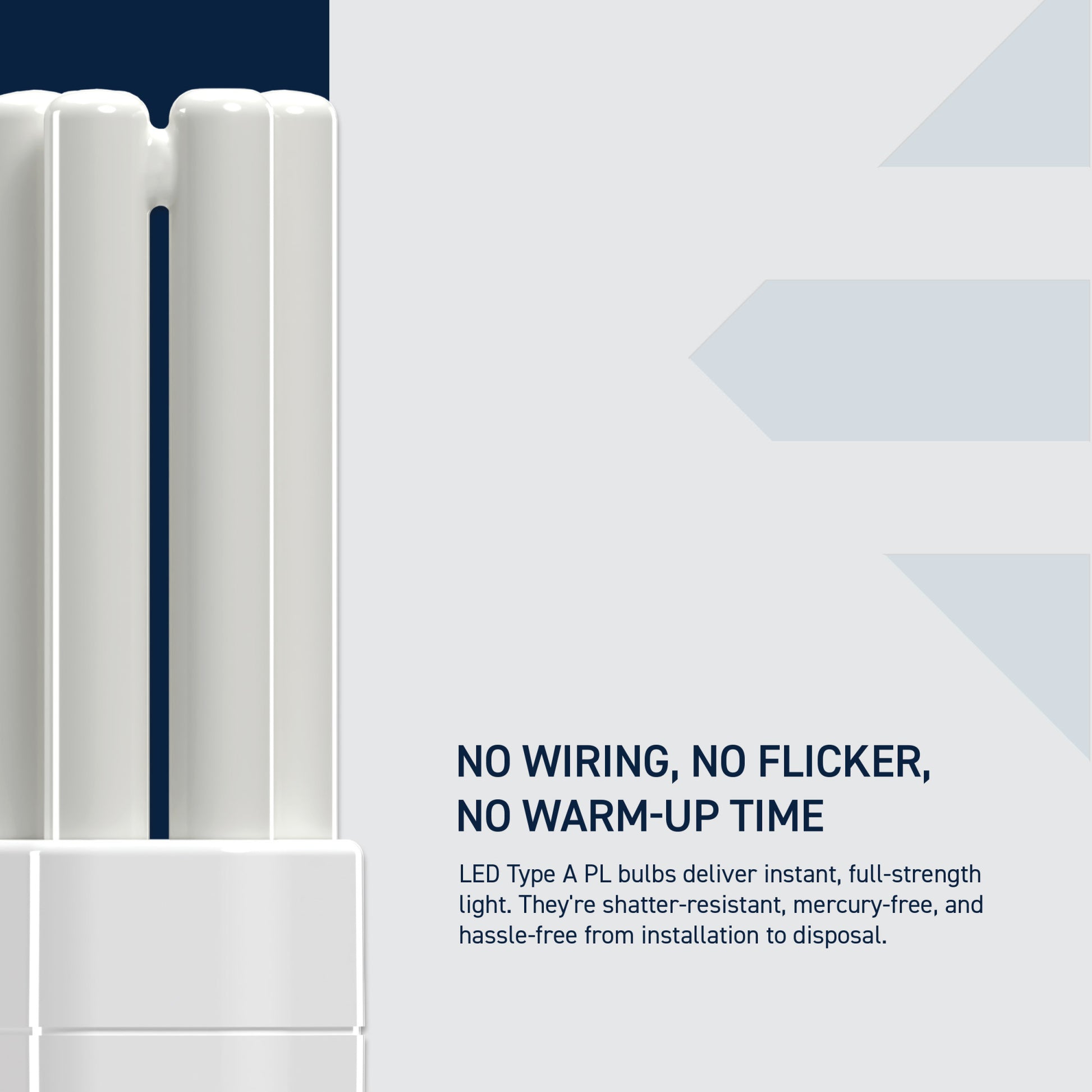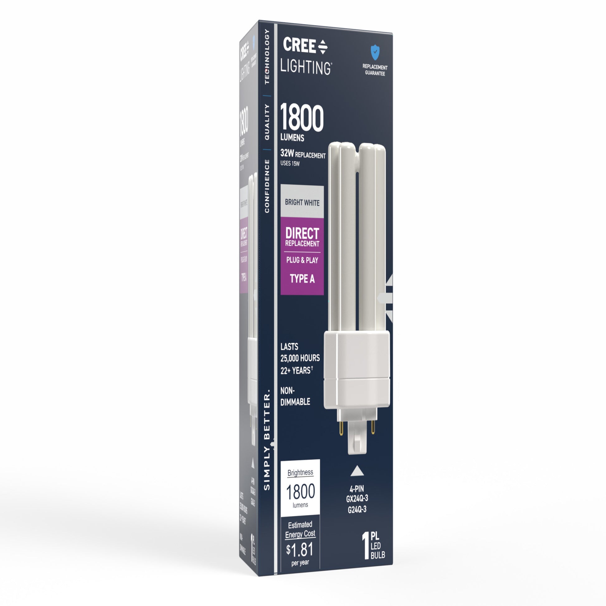 Step up your lighting game with this 32W Replacement Triple Tube PL LED Bulb. It installs effortlessly into GX24q-3 base fixtures and delivers Bright White (3500K) light—ideal for recessed or overhead fixtures in commercial and utility settings. With 1800 lumens of output, a long 25,000-hour life, and mercury-free construction, it's a clear upgrade.