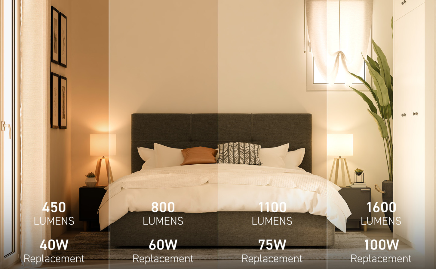 - 450/800/1100/1600 Lumens of brightness and 90+ CRI makes colors vivid and true-to-life, refreshing your décor