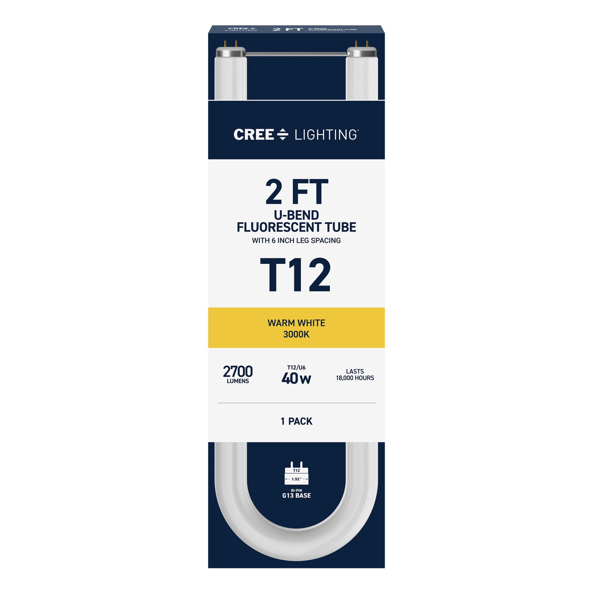Upgrade your lighting game with Cree Lighting’s 2ft Fluorescent U-Bend Light Tube, a perfect replacement for T12 fluorescent bulbs in almost any commercial or business environment. 3000K Warm White light creates a relaxed, welcoming environment in any room. This 2700 Lumen non-dimmable tube uses 40W of electricity, with relatively cool running performance for its entire 18,000-hour lifespan. Its G13 bi-pin base makes for easy installation and upgrades. Whether it’s in the garage, storage unit, warehouse, or office, enjoy flicker-free lighting built to last.