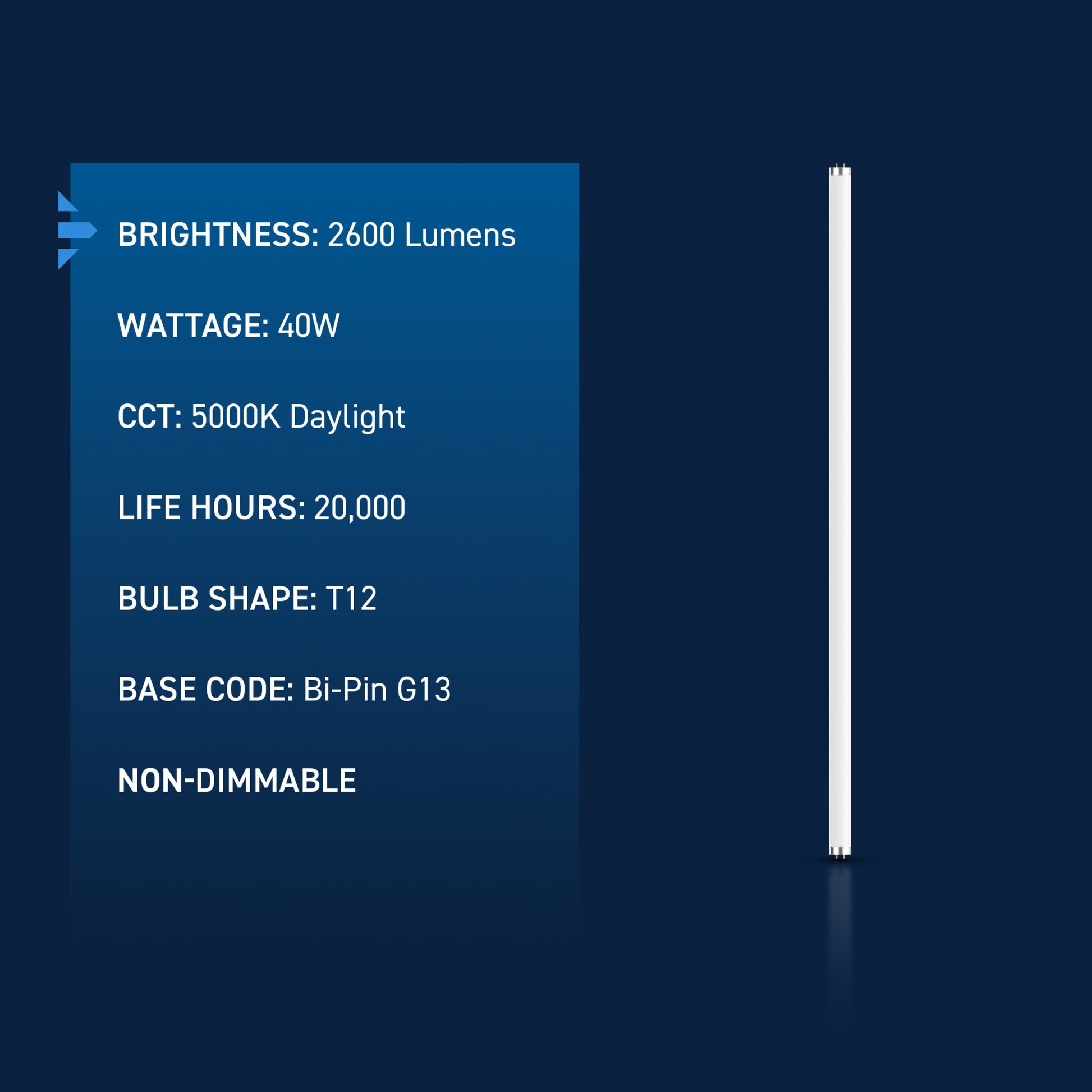 - 40W T12 shape is ideal for replacing old fluorescent tubes