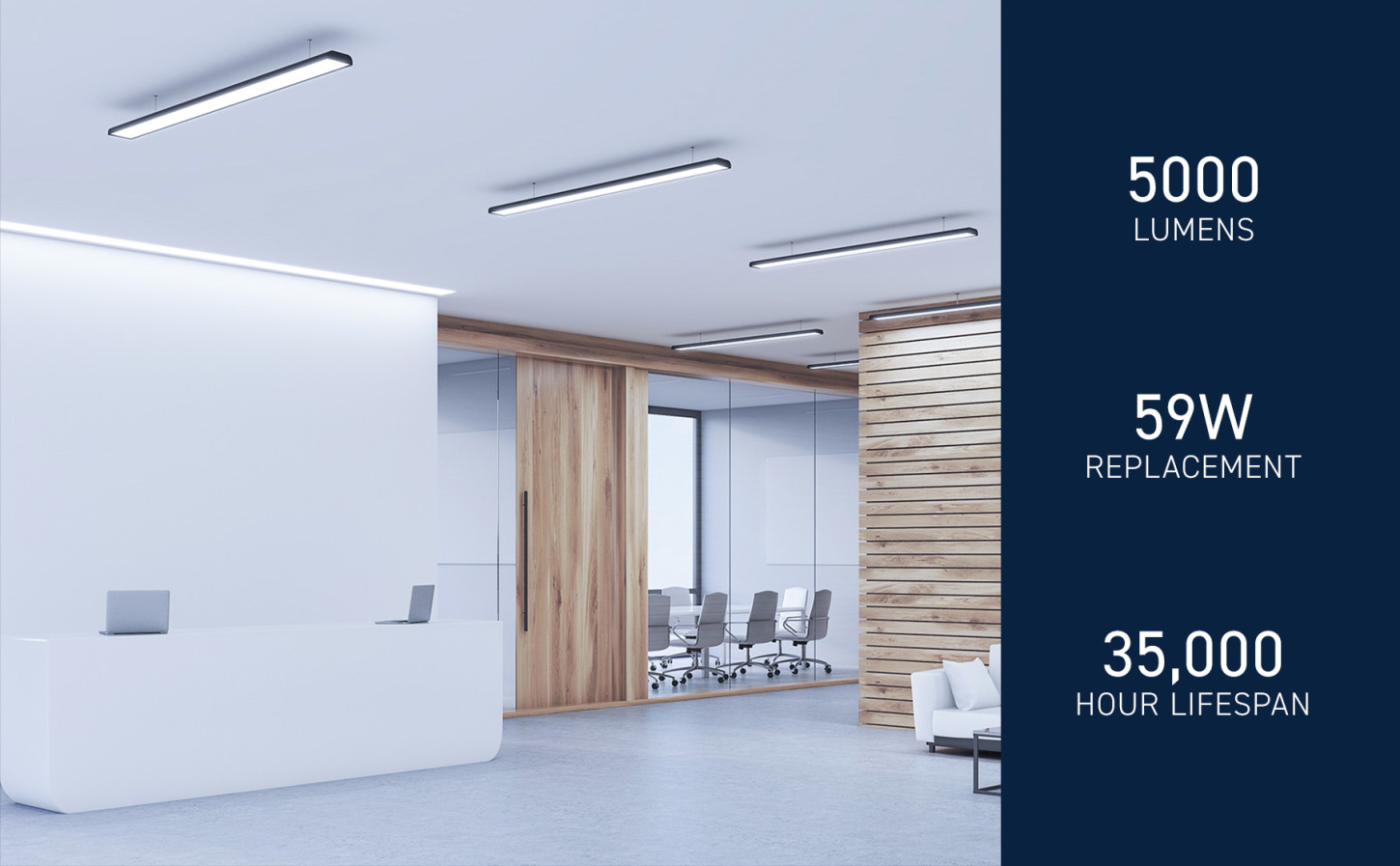 - 8ft linear tube ensures consistent light distribution across a broad area