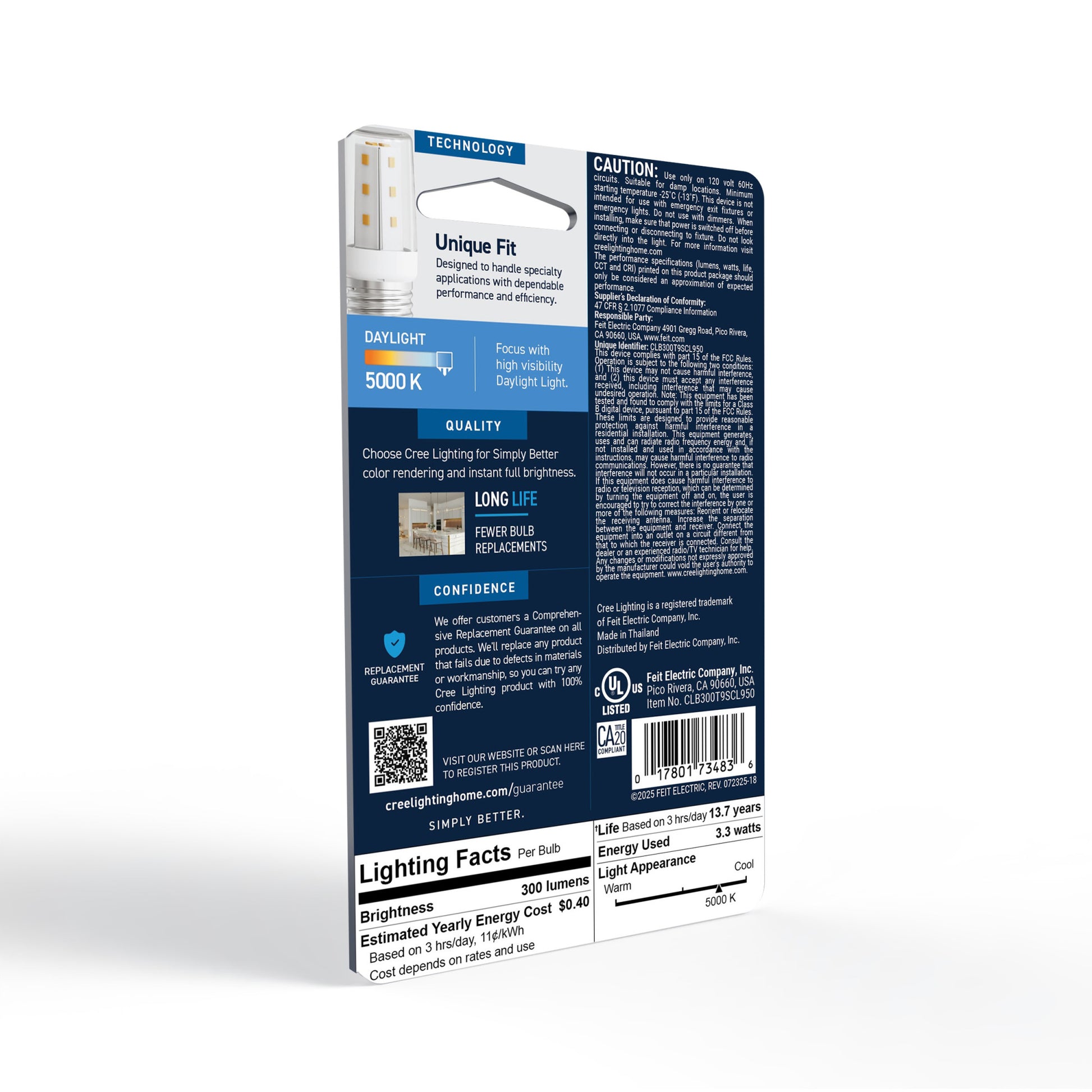 Appliance lights don’t have to be boring. Our Cree Lighting T9 LED delivers serious performance in a compact package made to thrive in enclosed environments—think fridges, freezers, or microwaves. At just 3.3 watts, it replaces a 40W incandescent while saving up to 91% in energy. You still get a bright 5000K Daylight glow and 300 lumens of brightness that turns on instantly and runs cool—because nobody wants a hot bulb in a cold fridge. And with 15,000 hours of life, this bulb isn’t just efficient—it’s in it for the long haul. No mercury. No flicker. Just dependable performance from a name that doesn’t mess around when it comes to quality lighting.