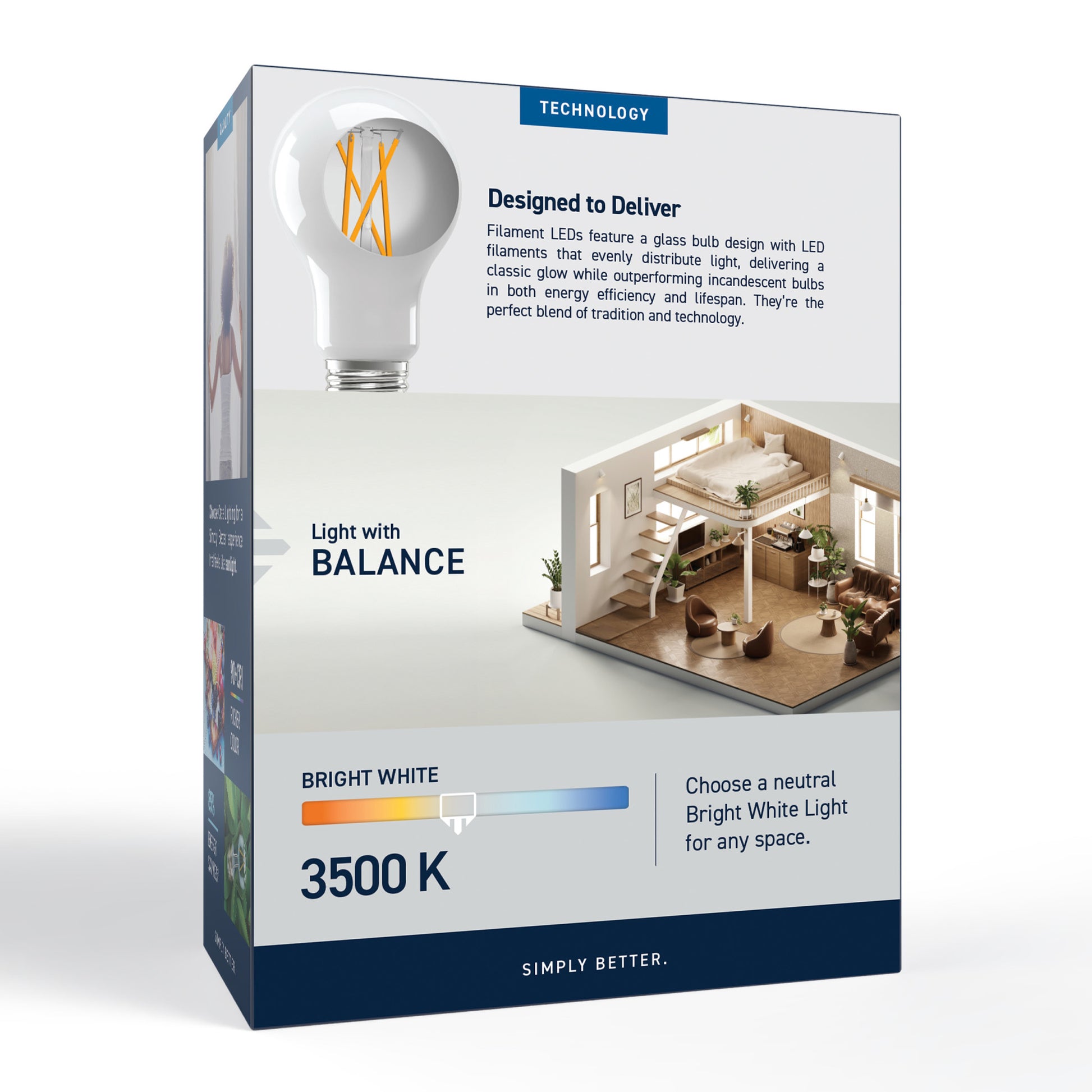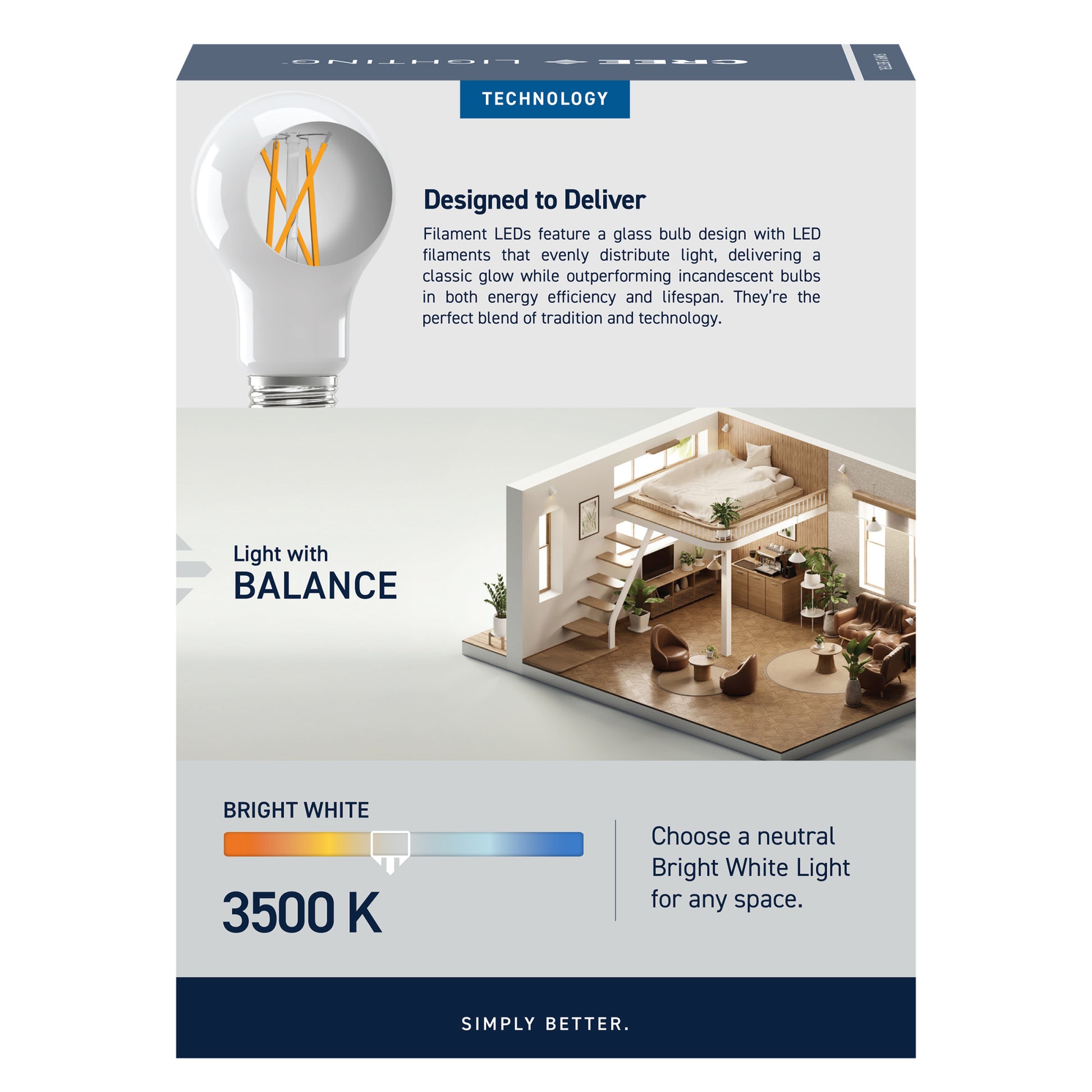 Upgrade your lighting game with our Bright White (3500K) LED Bulb that strikes the perfect balance with a neutral, versatile tone perfect for any room in the house. With a remarkable 90+ Color Rendering Index (CRI), colors appear more vivid and true-to-life, enhancing the beauty of your home's décor and making everything look its best. Built to last with an impressive 20,000-hour lifespan, this energy-efficient LED saves you money and time, reducing replacements and energy costs compared to traditional 60W incandescent bulbs. Featuring a medium E26 base, it's compatible with most fixtures, making upgrades effortless. Its dimmable design lets you set the mood with a flick of your wall switch. Illuminate your world with a bulb that combines comfort, clarity, and reliability in one brilliant package.