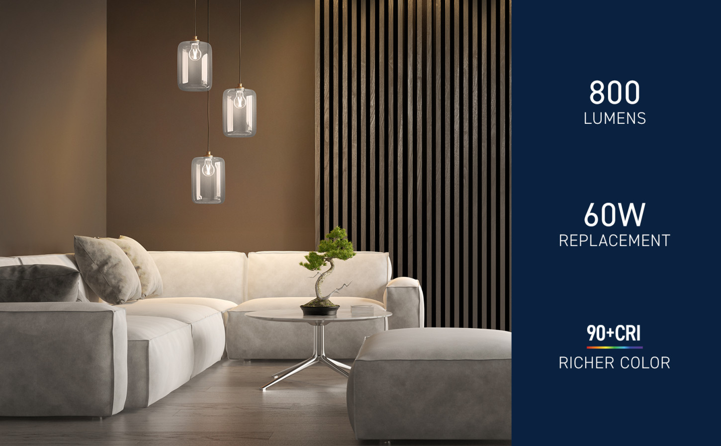 - 800 Lumens of brightness and 90+ CRI makes colors vivid and true-to-life, refreshing your décor