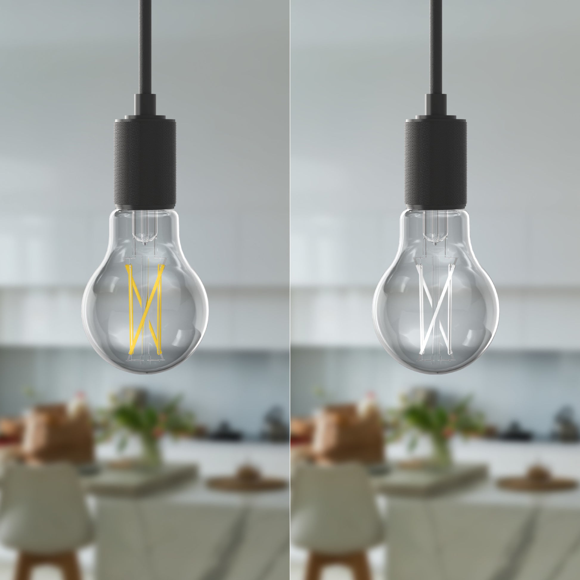 Refresh your lighting to fit your aesthetic with our White Filament LED A19 Switchable White bulb. Equipped with low-profile, white coated filament design, these clear glass bulbs give off stunning illumination while on and blend seamlessly into your decor while off. Toggle between Soft White (2700K), Warm White (3000K), Bright White (3500K), Cool White (4000K), and Daylight (5000K) to suit any room, whether you're going for cozy and inviting, bright and energizing, or matching other lighting in the room. The remarkable 90+ Color Rendering Index (CRI) makes colors appear more vivid and true-to-life, enhancing the beauty of your home's decor and making everything look its best for up to 20,000 hours. This 800-lumen bulb has a medium-size E26 base, making it an easy upgrade from traditional 60W incandescent bulbs in almost any fixture. Replacements are fewer and further between with eco-friendly, LED bulb technology. Whether it's in your living room, bedroom, or dining room, enjoy flicker-free, sustainable lighting that elevates your fixtures with effortlessly sleek style.