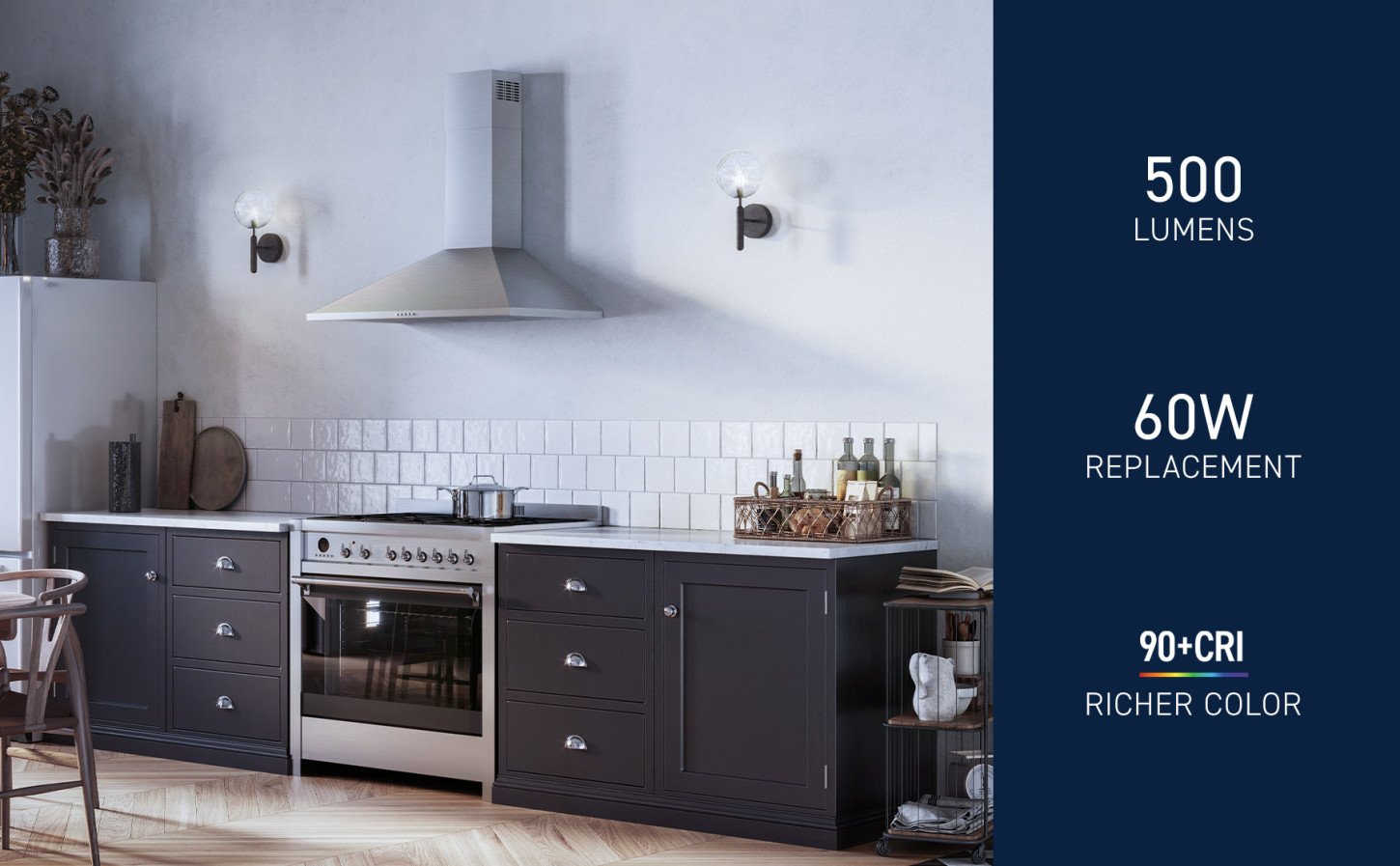 - 500 Lumens of brightness and 90+ CRI makes colors vivid and true-to-life, refreshing your décor