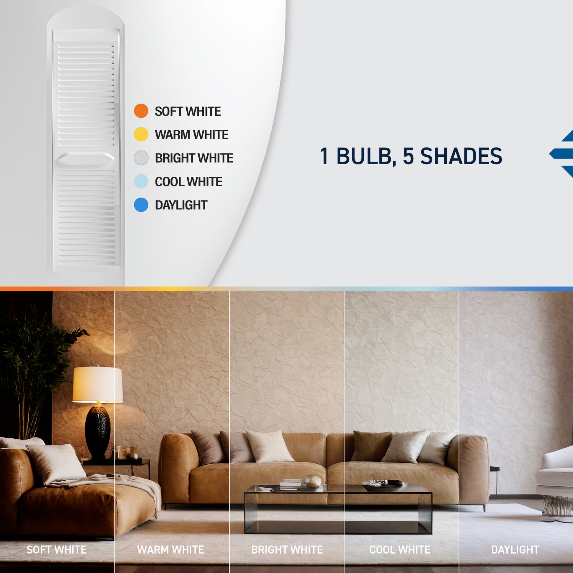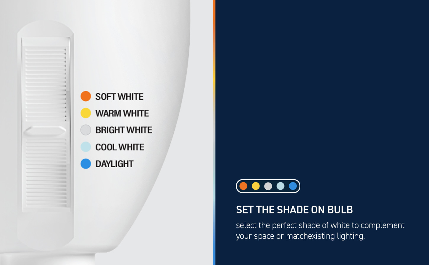 - Choose Soft White (2700K), Warm White (3000K), Bright White (3500K), Cool White (4000K), or Daylight (5000K)