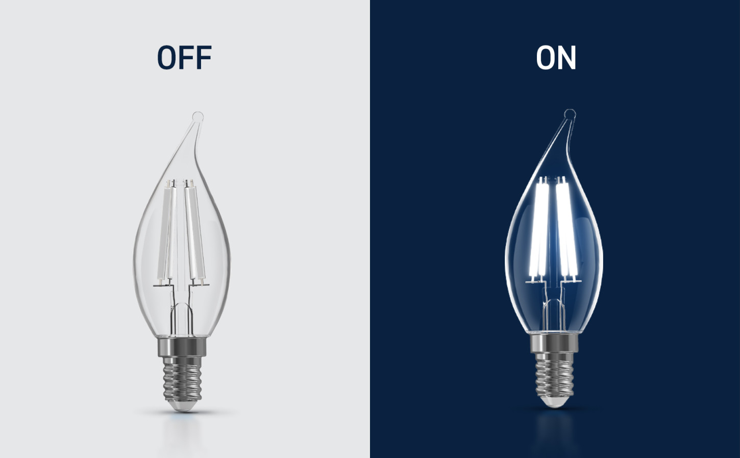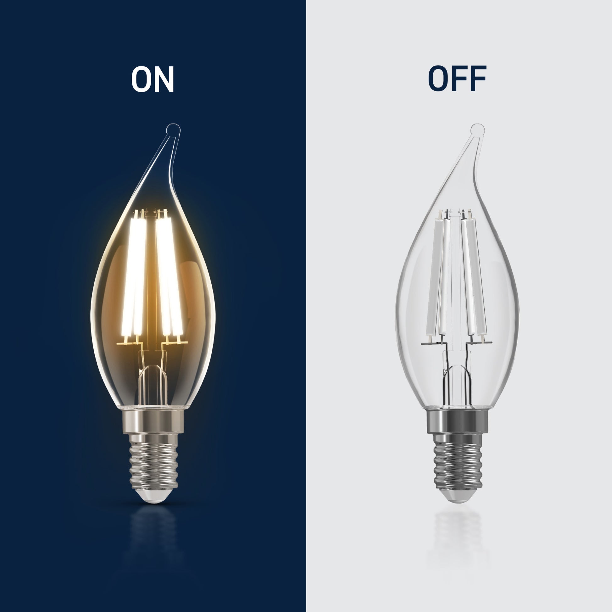Refresh your lighting to fit your aesthetic with our White Filament LED Bright White bulb. Equipped with low-profile, white coated filament design, these clear bulbs give off stunning, stylish illumination while on and blend seamlessly into your decor while off. The candle shape brings a high-end ambiance to your fixtures. Strike the perfect balance with the neutral, versatile Bright White Light (3500K). The remarkable 90+ Color Rendering Index (CRI) makes colors appear more vivid and true-to-life, enhancing the beauty of your home’s decor and making everything look its best for up to 20,000 hours. This 500-lumen bulb has a Candelabra E12 base, and replacements are fewer and further between with eco-friendly, LED bulb technology. This bulb does with 5.5W what a traditional incandescent bulb does with 60W, making it 90.8% more efficient. Whether it’s in your living room, bedroom, or dining room, enjoy flicker-free, sustainable lighting that elevates your fixtures with effortlessly sleek style.