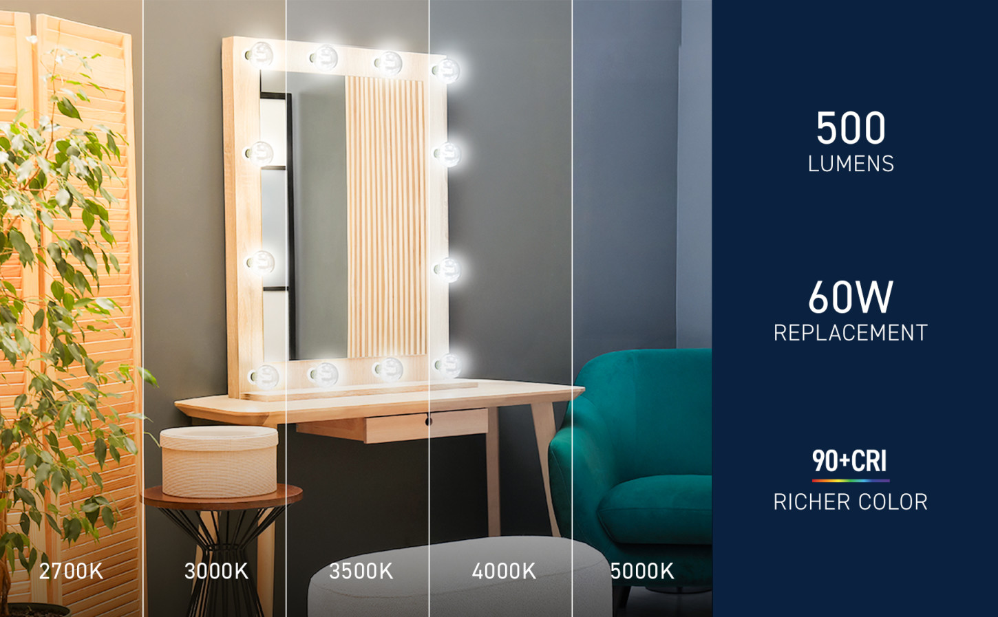 - Choose between Soft White (2700K), Warm White (3000K), Bright White (3500K), Cool White (4000K), and Daylight (5000K)