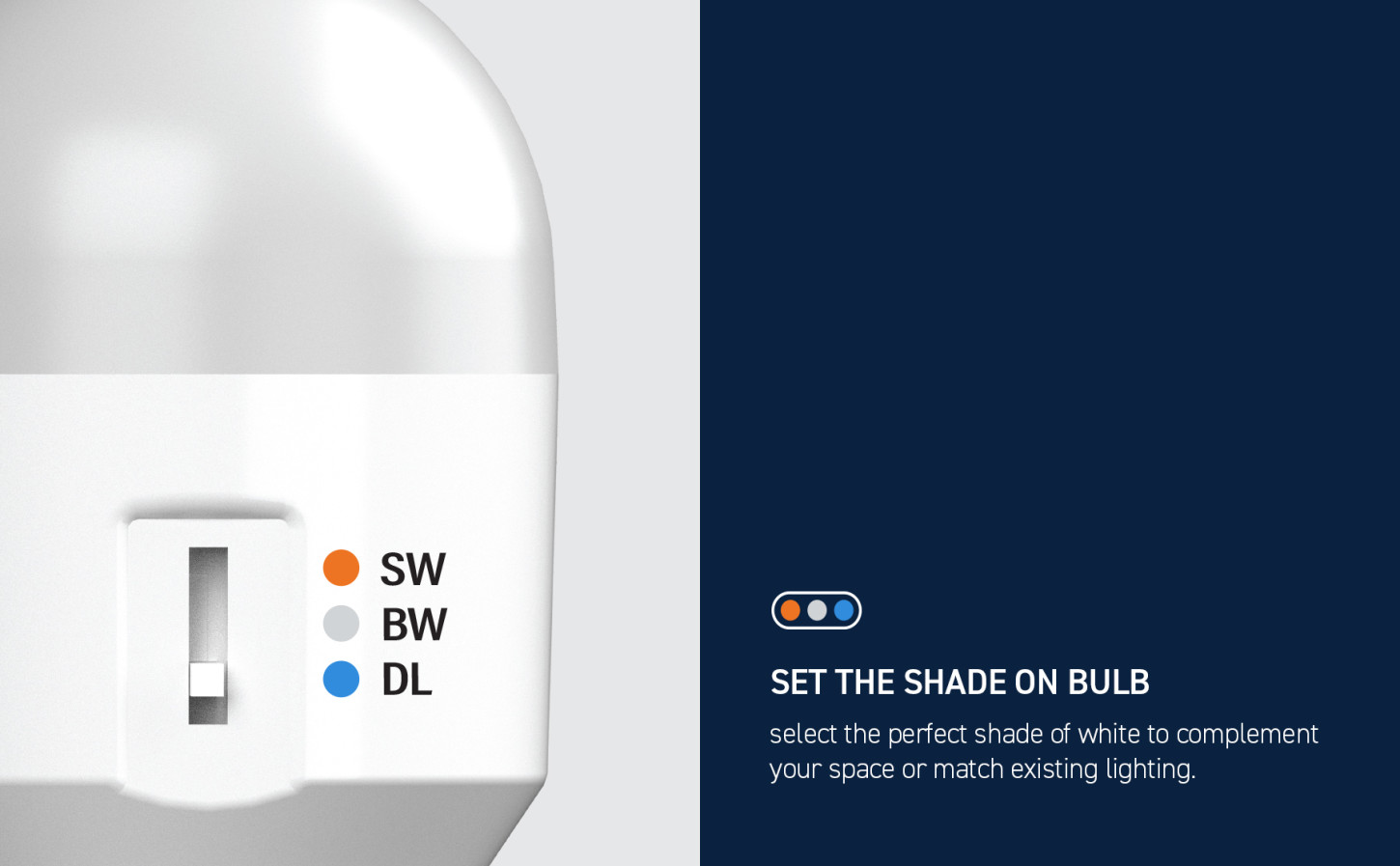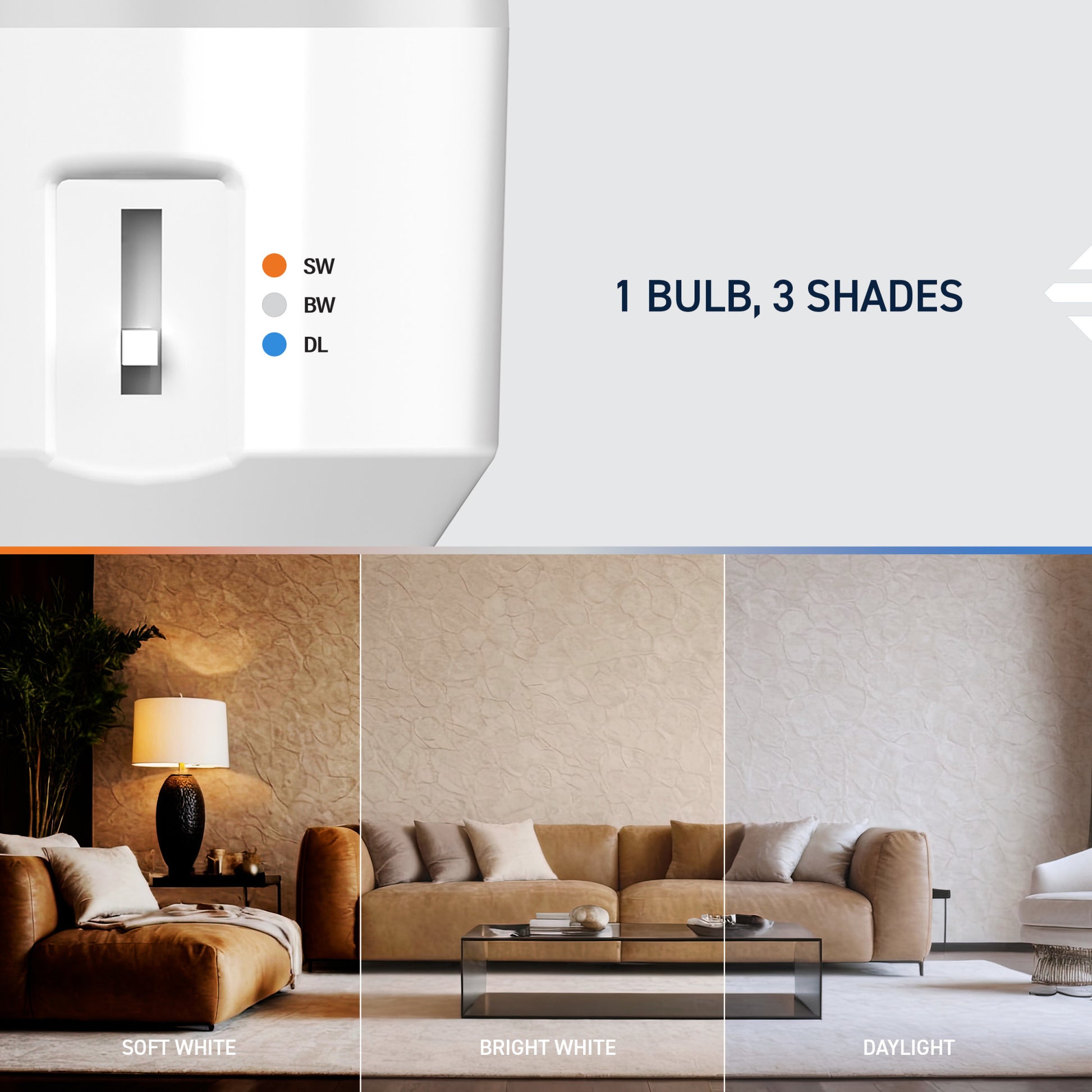- Choose Soft White (2700K), Bright White (3500K), or Daylight (5000K)