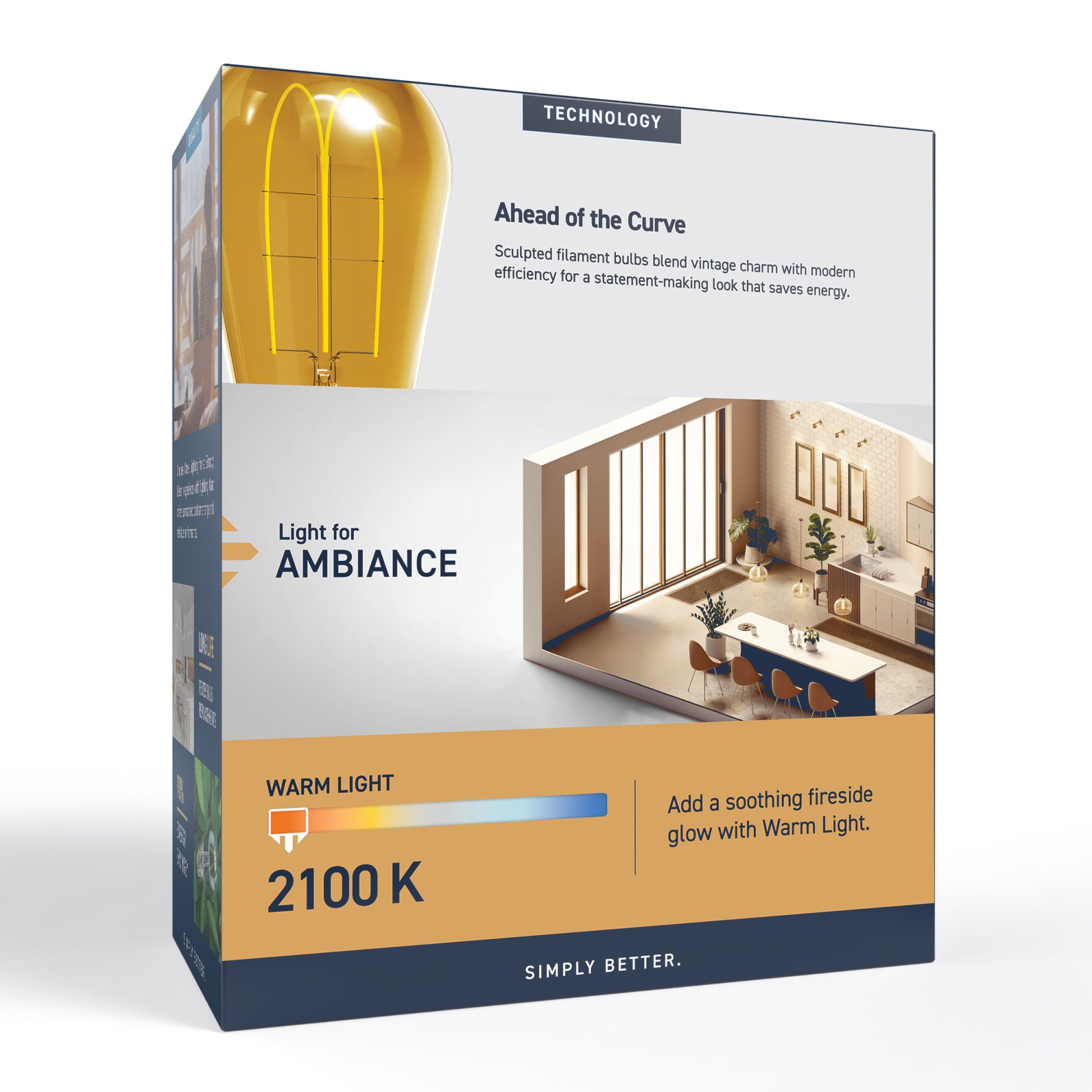 • Get a cozy ambiance with vintage flare with this Warm Light (2100K) bulb