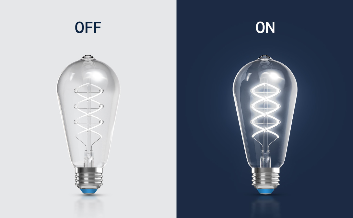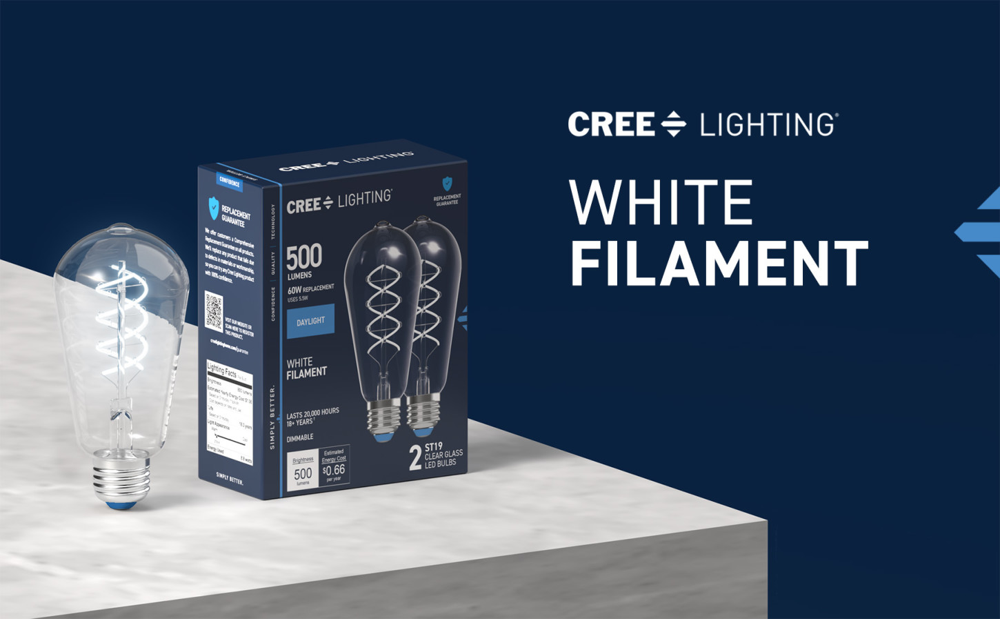 • A fresh look with stunning LED light—white filaments glow beautifully on or off