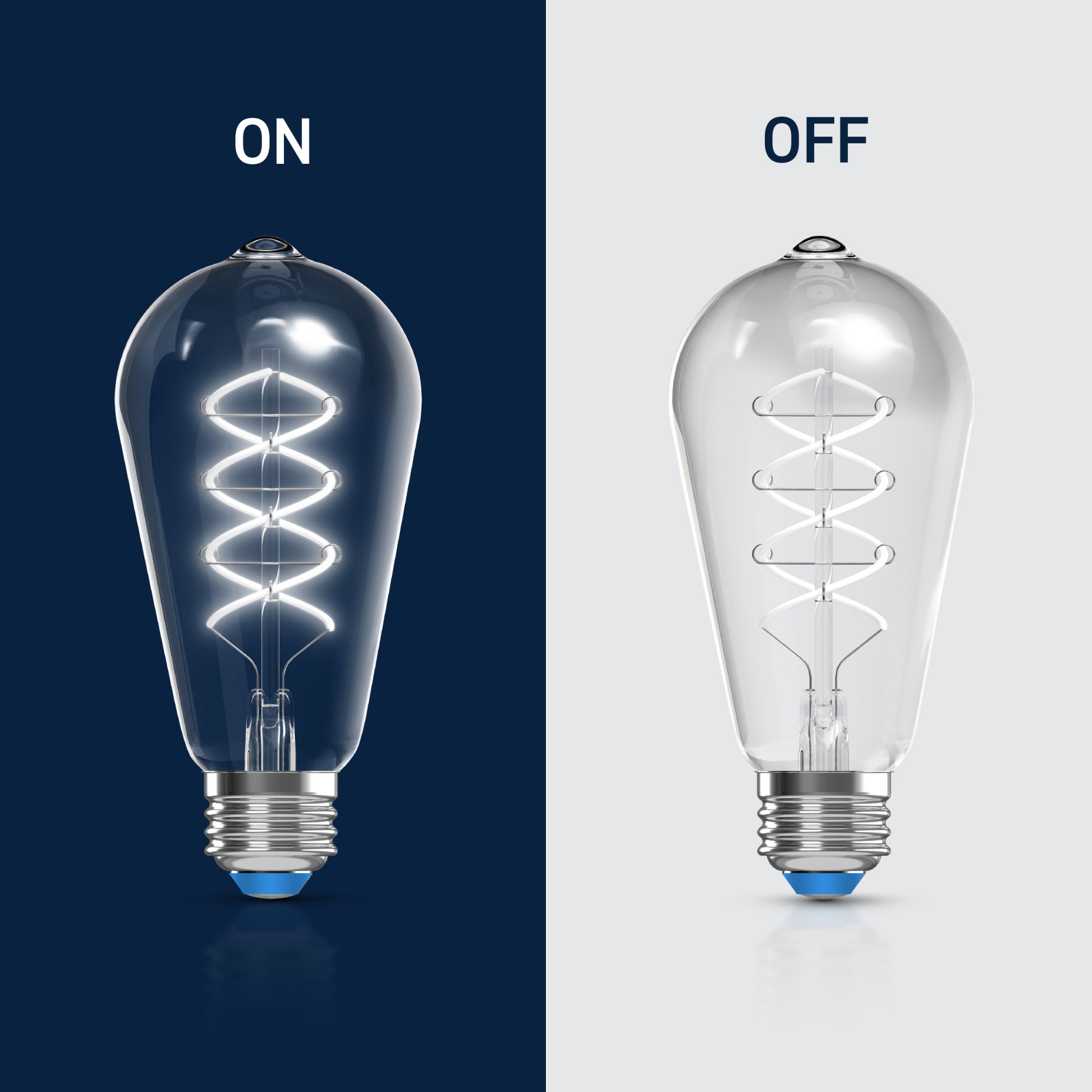 Refresh your lighting to fit your aesthetic with our White Filament LED ST19 Daylight bulb. Equipped with low-profile, white coated filament design, these clear glass bulbs give off stunning illumination while on and blend seamlessly into your decor while off. The Daylight (5000K) tone boosts visibility in your space and keeps you on task with its vibrant clarity for up to 20,000 hours. The remarkable 90+ Color Rendering Index (CRI) makes colors appear more vivid and true-to-life, enhancing the beauty of your home's decor and making everything look its best. This 5.5W, 500 lumen bulb has a medium-size E26 base, making it an easy upgrade from traditional 60W incandescent bulbs in almost any fixture, while saving up to 90.8% on costs and energy. Replacements are fewer and further between with eco-friendly, LED bulb technology. Whether it's in your living room, home office, or basement, enjoy flicker-free, sustainable lighting that elevates your fixtures with effortlessly sleek style.