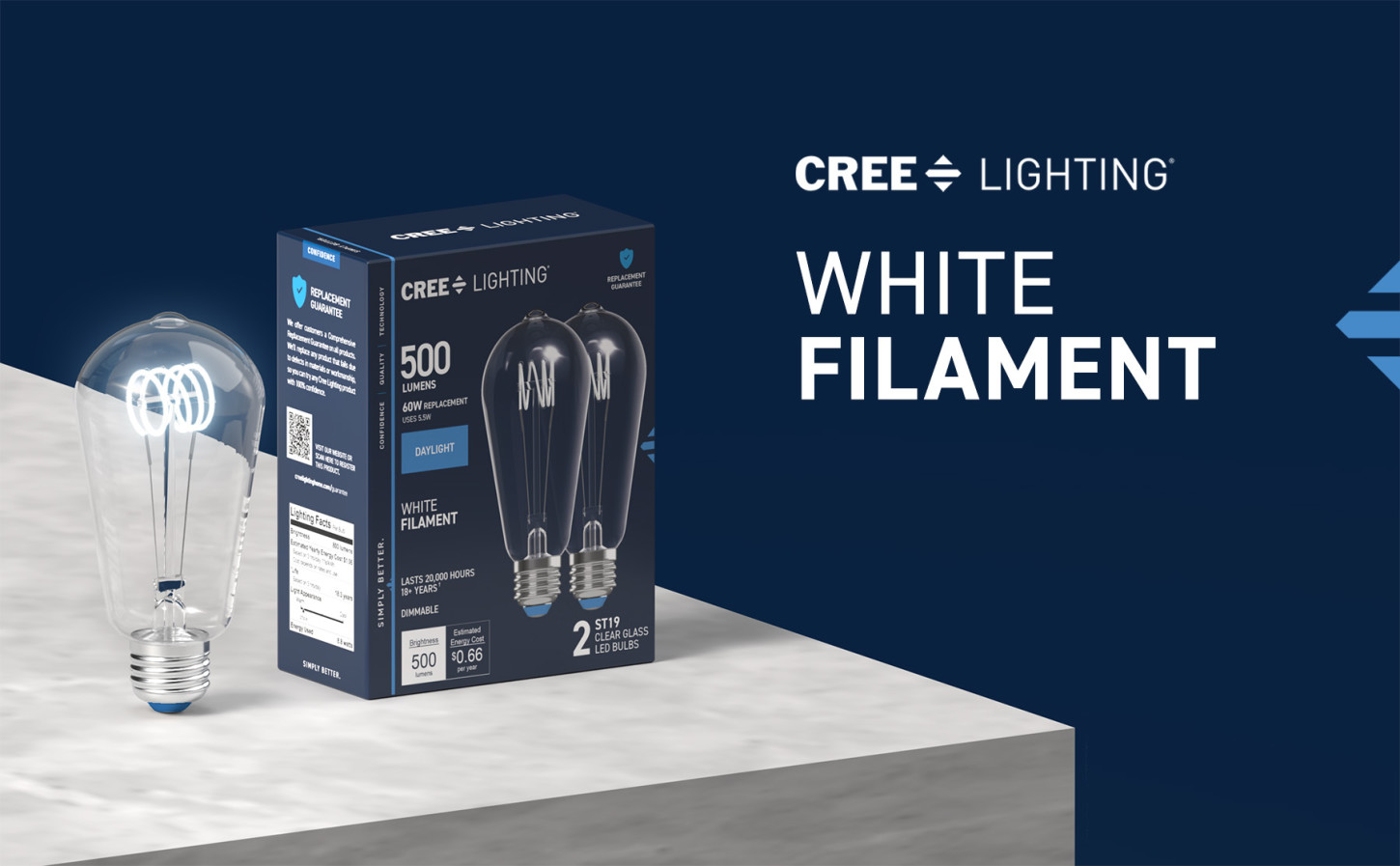 • A fresh look with stunning LED light—white filaments glow beautifully on or off