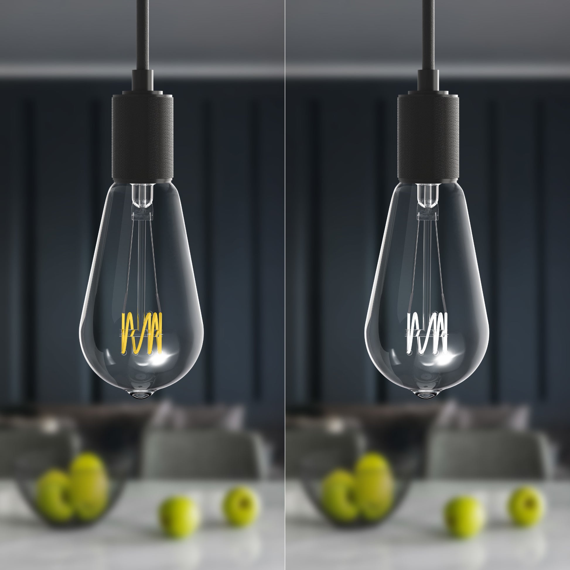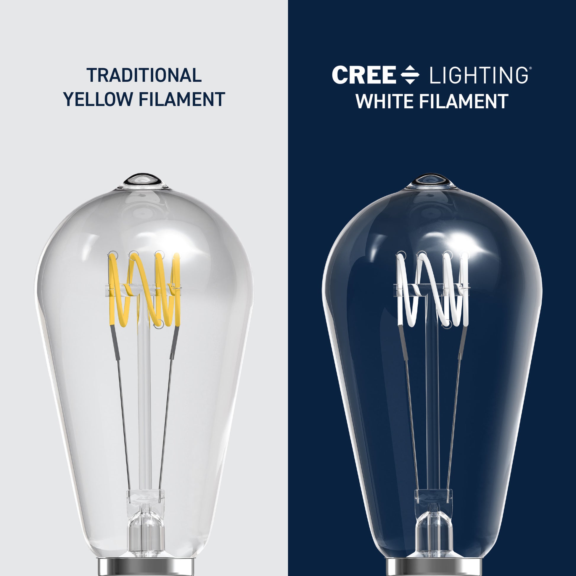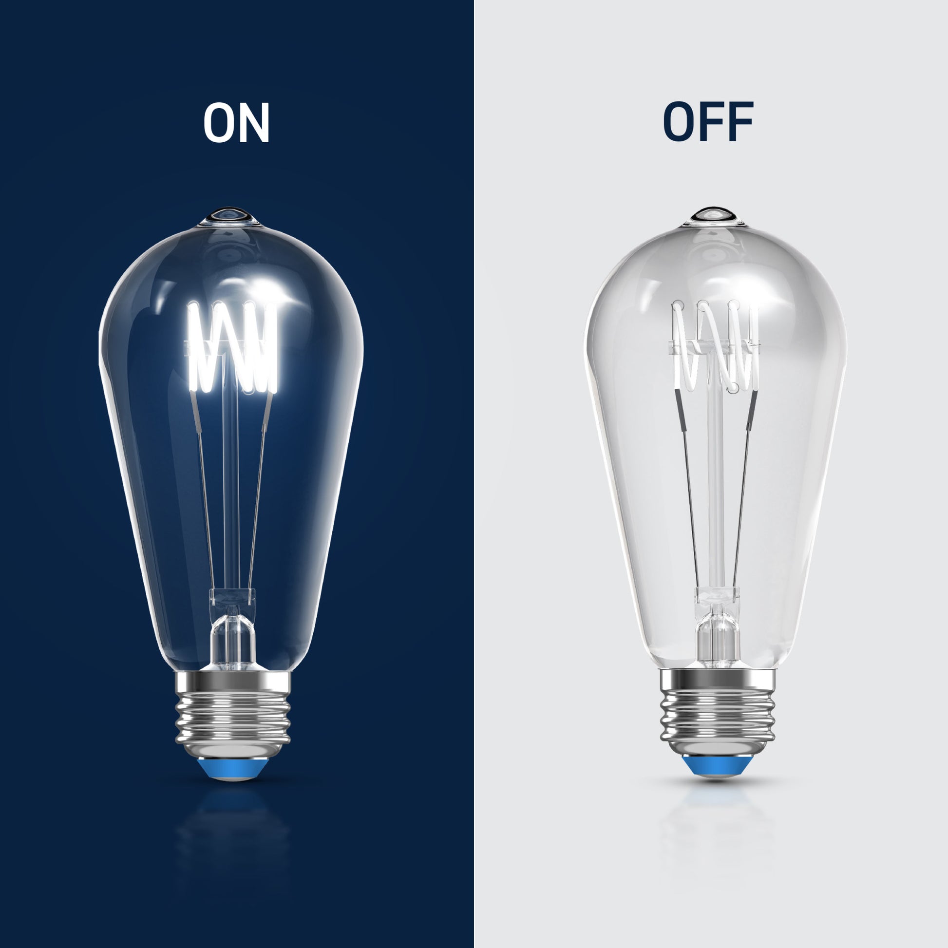 Refresh your lighting to fit your aesthetic with our White Filament LED ST19 Daylight bulb. Equipped with low-profile, white coated filament design, these clear glass bulbs give off stunning illumination while on and blend seamlessly into your decor while off. The Daylight (5000K) tone boosts visibility in your space and keeps you on task with its vibrant clarity for up to 20,000 hours. The remarkable 90+ Color Rendering Index (CRI) makes colors appear more vivid and true-to-life, enhancing the beauty of your home's decor and making everything look its best. This 5.5W, 500 lumen bulb has a medium-size E26 base, making it an easy upgrade from traditional 60W incandescent bulbs in almost any fixture, while saving up to 90.8% on costs and energy. Replacements are fewer and further between with eco-friendly, LED bulb technology. Whether it's in your living room, home office, or basement, enjoy flicker-free, sustainable lighting that elevates your fixtures with effortlessly sleek style.