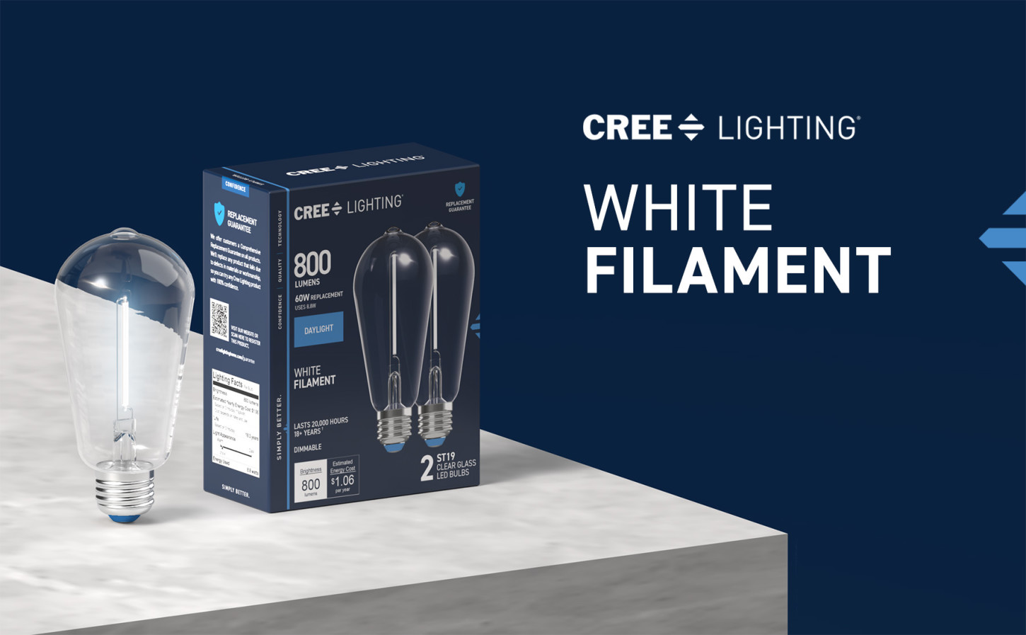 Refresh your lighting to fit your aesthetic with our White Filament LED ST19 Daylight bulb. Equipped with low-profile, white coated filament design, these clear glass bulbs give off stunning illumination while on and blend seamlessly into your decor while off. The Daylight (5000K) tone boosts visibility in your space and keeps you on task with its vibrant clarity for up to 20,000 hours. The remarkable 90+ Color Rendering Index (CRI) makes colors appear more vivid and true-to-life, enhancing the beauty of your home's decor and making everything look its best. This 800-lumen bulb has a medium-size E26 base, making it an easy upgrade from traditional 60W incandescent bulbs in almost any fixture. Replacements are fewer and further between with eco-friendly, LED bulb technology. Whether it's in your living room, home office, or basement, enjoy flicker-free, sustainable lighting that elevates your fixtures with effortlessly sleek style.