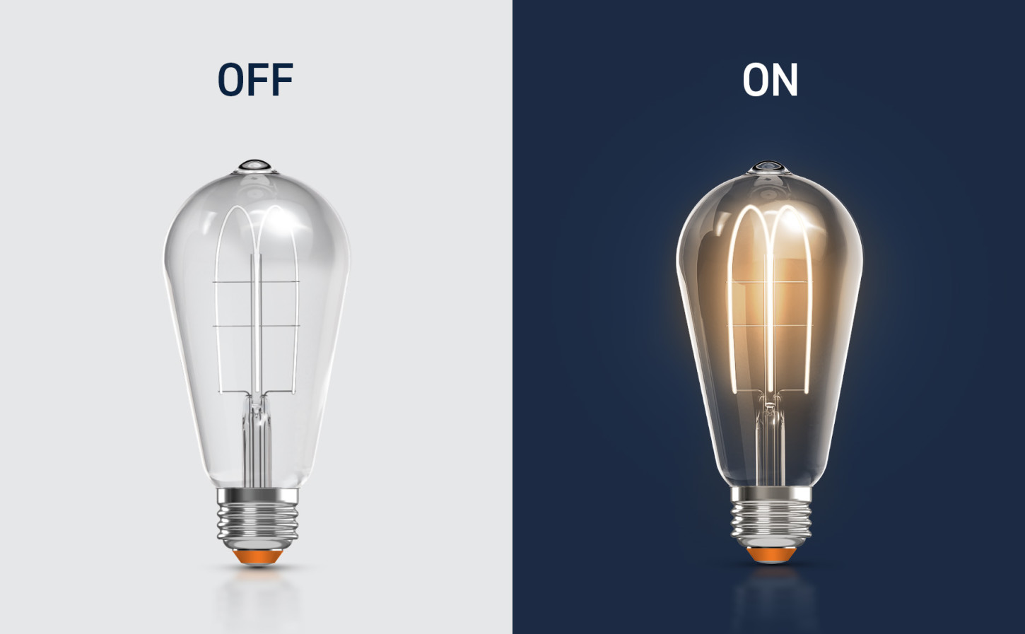 • A fresh look with stunning LED light—white filaments glow beautifully on or off