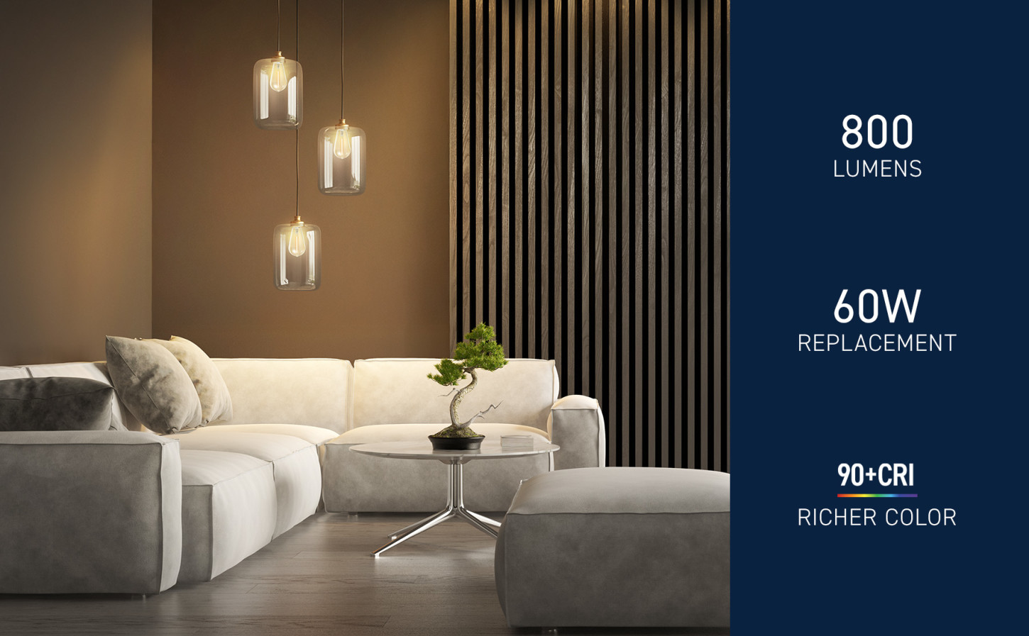 - 800 Lumens of brightness and 90+ CRI makes colors vivid and true-to-life, refreshing your décor