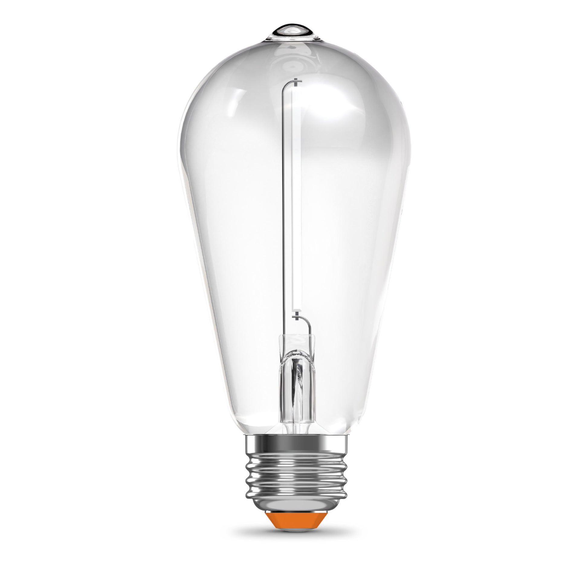 Refresh your lighting to fit your aesthetic with our White Filament LED ST19 Soft White bulb. Equipped with low-profile, white coated filament design, these clear glass bulbs give off stunning illumination while on and blend seamlessly into your decor while off. The Soft White (2700K) tone creates a warm, inviting atmosphere that makes any space feel like home for up to 20,000 hours. The remarkable 90+ Color Rendering Index (CRI) makes colors appear more vivid and true-to-life, enhancing the beauty of your home’s decor and making everything look its best. This 800-lumen bulb has a medium-size E26 base, making it an easy upgrade from traditional 60W incandescent bulbs in almost any fixture. Replacements are fewer and further between with eco-friendly, LED bulb technology. Whether it’s in your living room, bedroom, or reading nook, enjoy flicker-free, sustainable lighting that elevates your fixtures with effortlessly sleek style.