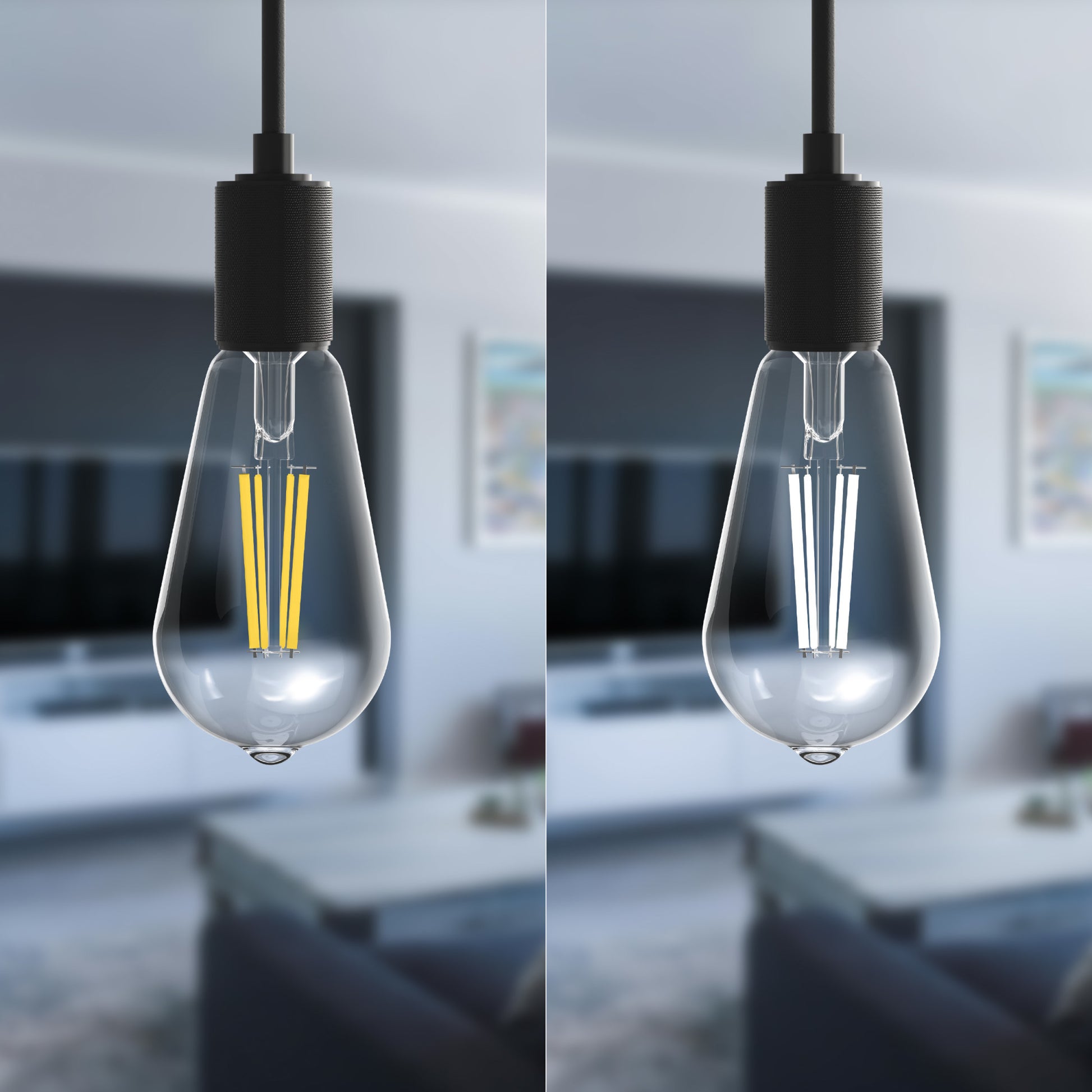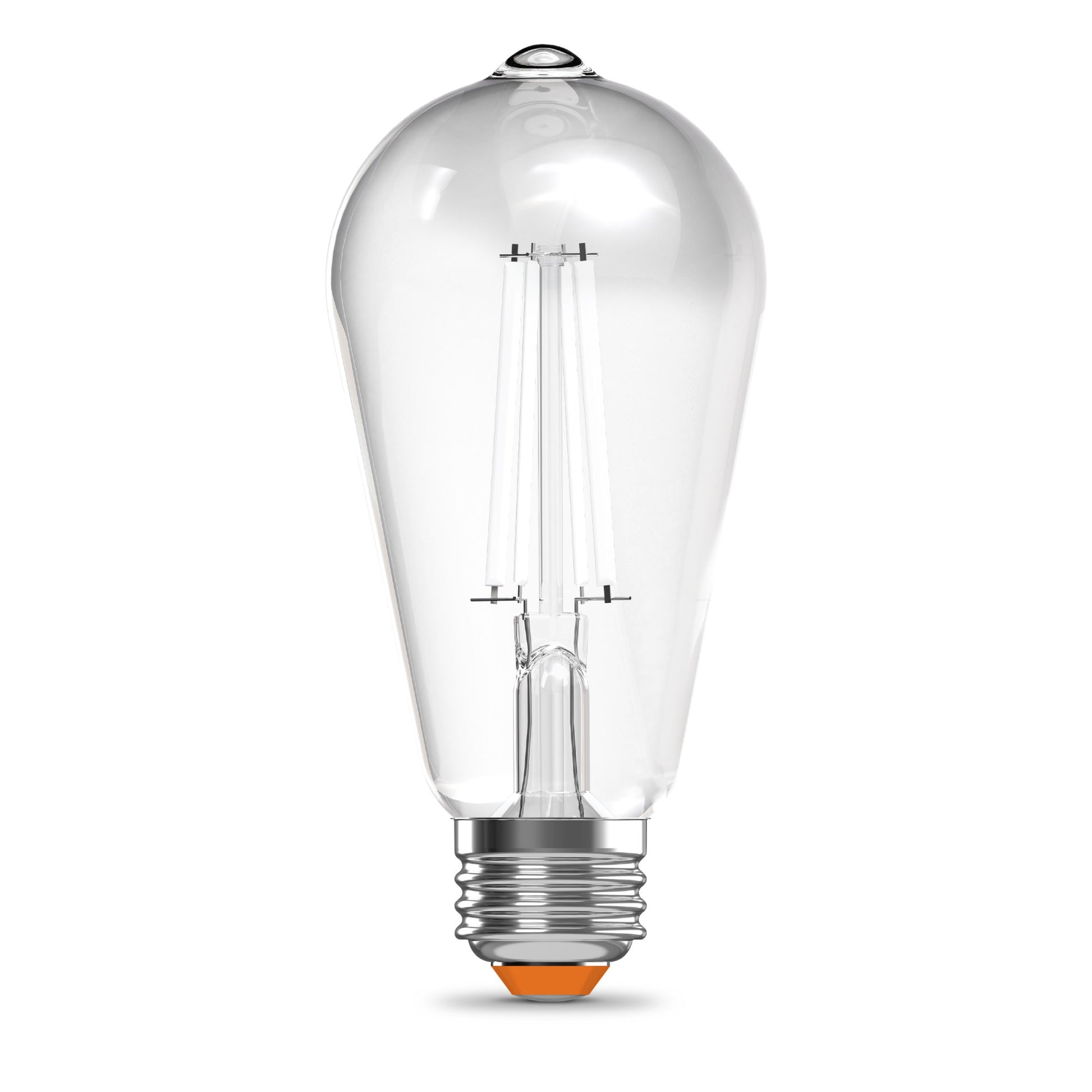 Refresh your lighting to fit your aesthetic with our White Filament LED ST19 Soft White bulb. Equipped with low-profile, white coated filament design, these clear glass bulbs give off stunning illumination while on and blend seamlessly into your decor while off. The Soft White (2700K) tone creates a warm, inviting atmosphere that makes any space feel like home for up to 20,000 hours. The remarkable 90+ Color Rendering Index (CRI) makes colors appear more vivid and true-to-life, enhancing the beauty of your home’s decor and making everything look its best. This 800-lumen bulb has a medium-size E26 base, making it an easy upgrade from traditional 60W incandescent bulbs in almost any fixture. Replacements are fewer and further between with eco-friendly, LED bulb technology. Whether it’s in your living room, bedroom, or reading nook, enjoy flicker-free, sustainable lighting that elevates your fixtures with effortlessly sleek style.