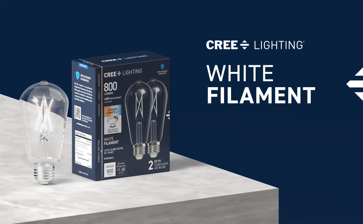 Refresh your lighting to fit your aesthetic with our White Filament LED ST19 Switchable White bulb. Equipped with low-profile, white coated filament design, these clear glass bulbs give off stunning illumination while on and blend seamlessly into your decor while off. Toggle between Warm Light (2200K), Soft White (2700K), Bright White (3500K), Cool White (4000K), and Daylight (5000K) to suit any room, whether you're going for cozy and inviting, bright and energizing, or matching other lighting in the room. The remarkable 90+ Color Rendering Index (CRI) makes colors appear more vivid and true-to-life, enhancing the beauty of your home's decor and makes everything look its best for up to 20,000 hours. This 800-lumen bulb has a medium-size E26 base, making it an easy upgrade from traditional 60W incandescent bulbs in almost any fixture. Replacements are fewer and further between with eco-friendly, LED bulb technology. Whether it's in your living room, bedroom, or reading nook, enjoy flicker-free, sustainable lighting that elevates your fixtures with effortlessly sleek style.