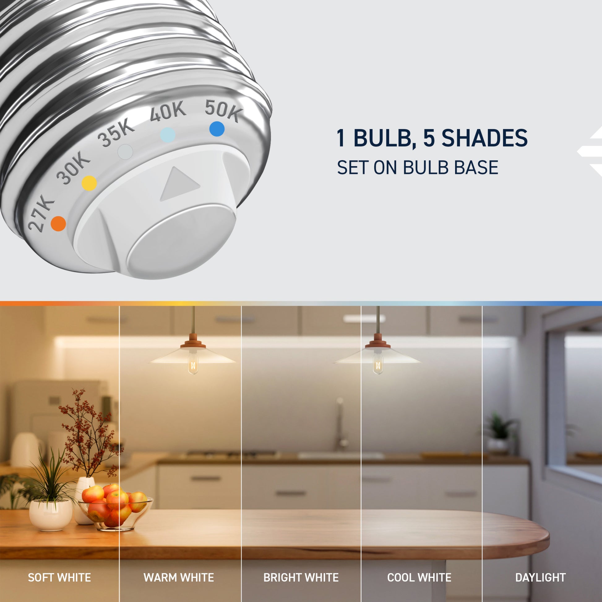 - Choose Warm Light (2200K), Soft White (2700K), Bright White (3500K), Cool White (4000K), or Daylight (5000K)