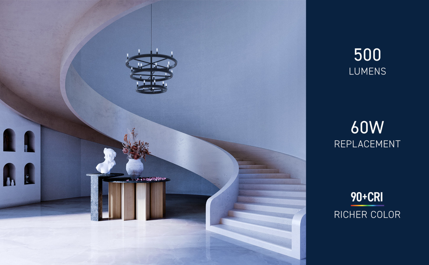 - 500 Lumens of brightness and 90+ CRI makes colors vivid and true-to-life, refreshing your décor