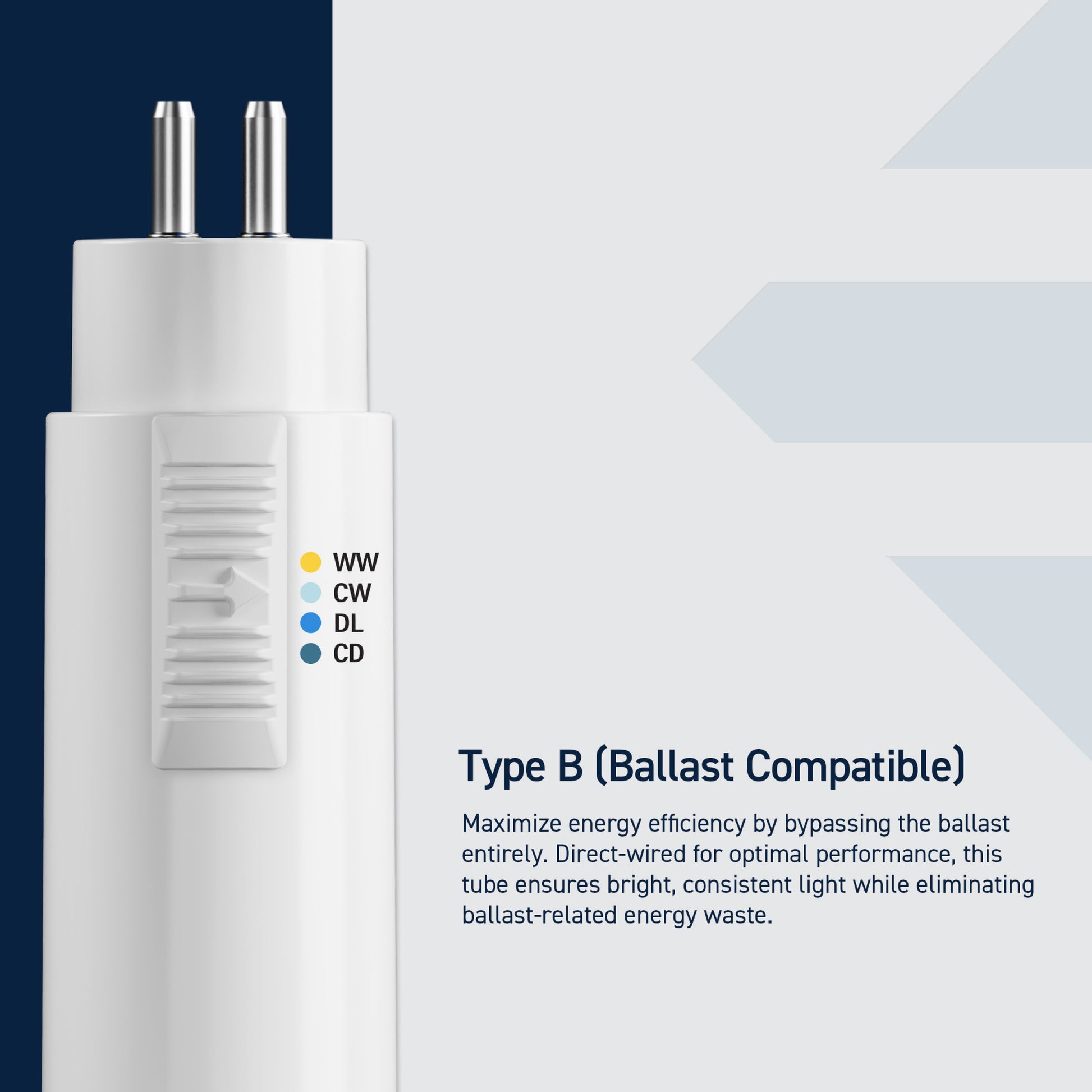 - Type B Ballast Bypass uses direct wiring and requires less maintenance over time